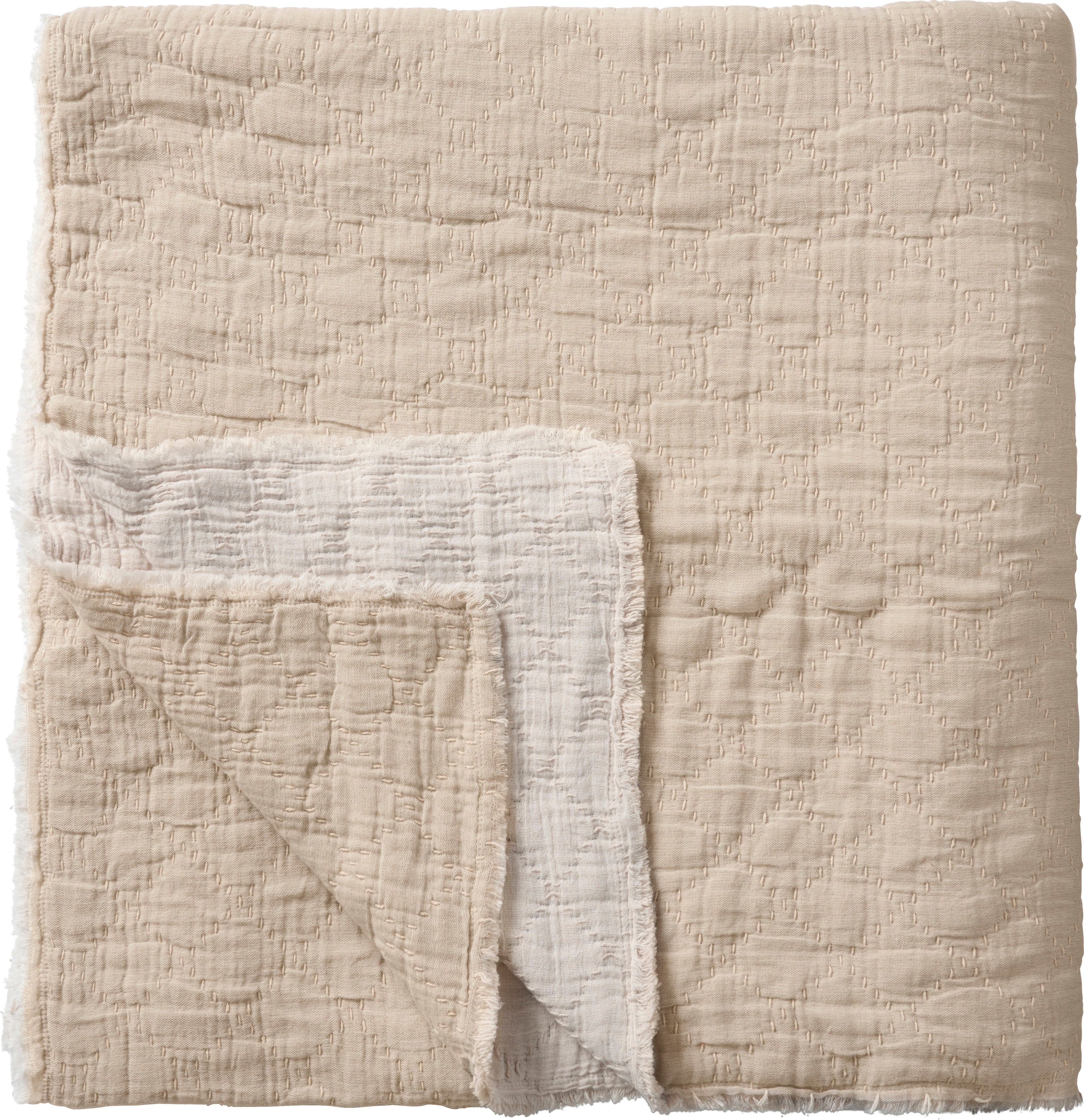 IB Laursen Koc, narzuta z haftem w kratkę, Natualny / Offwhite