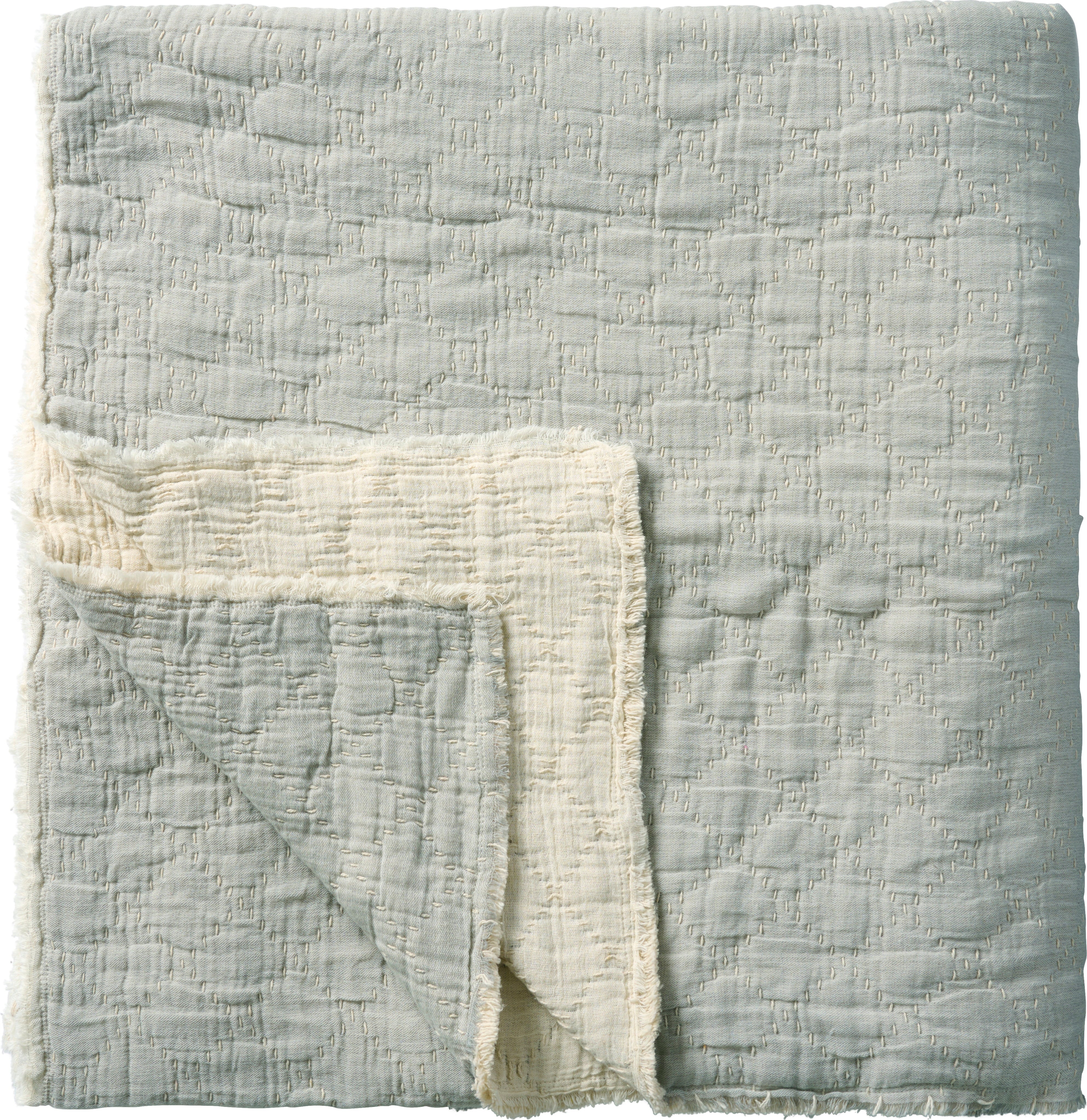 IB Laursen Koc, narzuta z haftem w kratkę, Jasnoniebieski / Offwhite