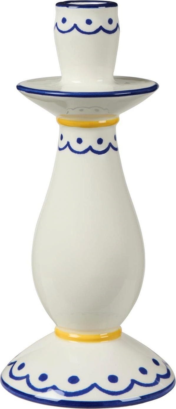 IB Laursen Świecznik biały/niebieski z żółtym wzorem