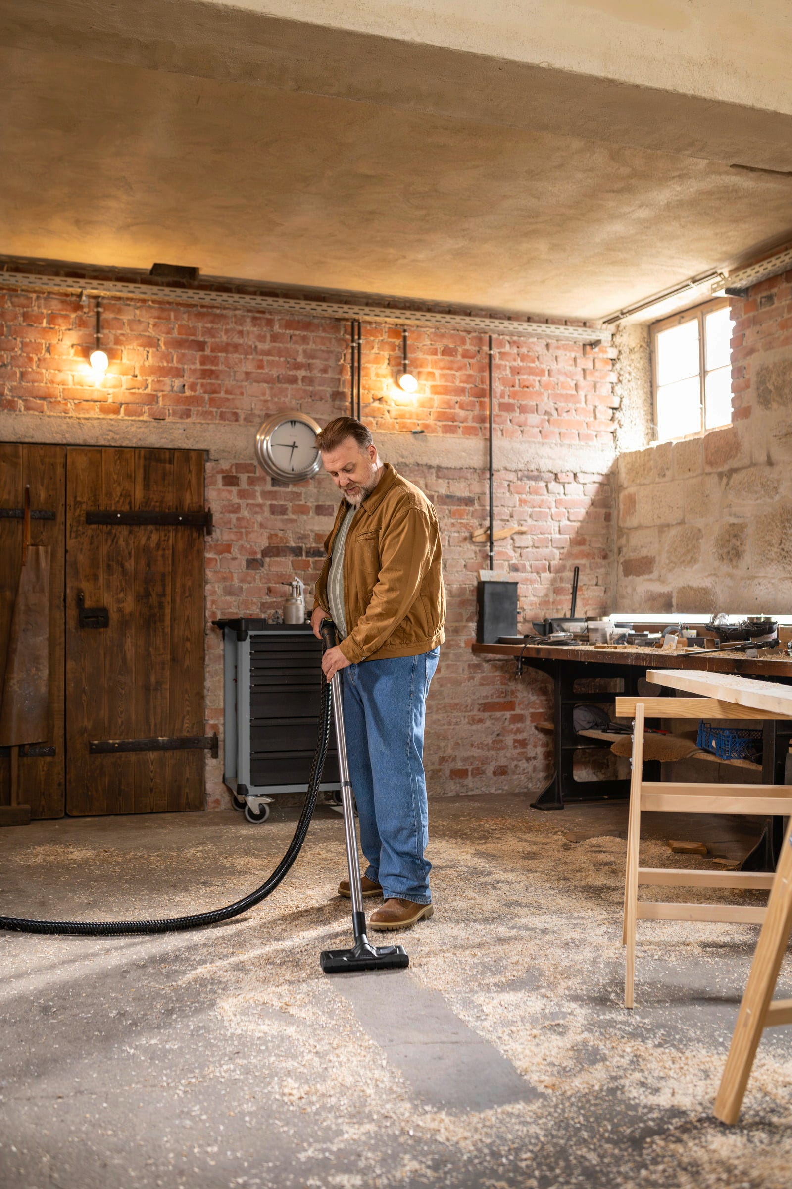 Jako odkurzacz do pracy na mokro i sucho na place budowy, niezawodnie usuwa gruz, pył czy trociny. W warsztacie eliminuje pył szlifierski, wióry drewniane lub resztki metalu, a jako odkurzacz do podłóg dokładnie czyści również posadzki betonowe, piwniczne czy warsztatowe. Nawet mniejsze szkody spowodowane przez wodę w gospodarstwie domowym lub wilgoć w piwnicy można sprawnie usunąć. Model ten nadaje się również do garażu, pielęgnacji pojazdów czy wnętrz samochodów, oferując wystarczającą pojemność do dłuższej pracy bez częstego opróżniania.