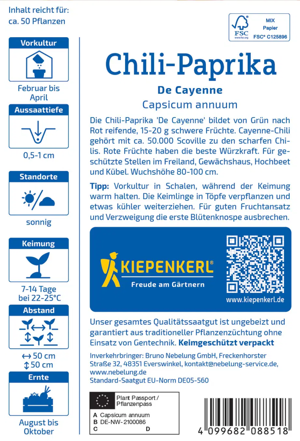Papryka chili 'De Cayenne' zachwyca jaskrawoczerwonymi, małymi owocami i wnosi pikantne ciepło do kuchni. Wystarczy uprawiać ją w ogrodzie, w pojemniku lub szklarni i zbierać świeże, aromatyczne papryczki chilli!