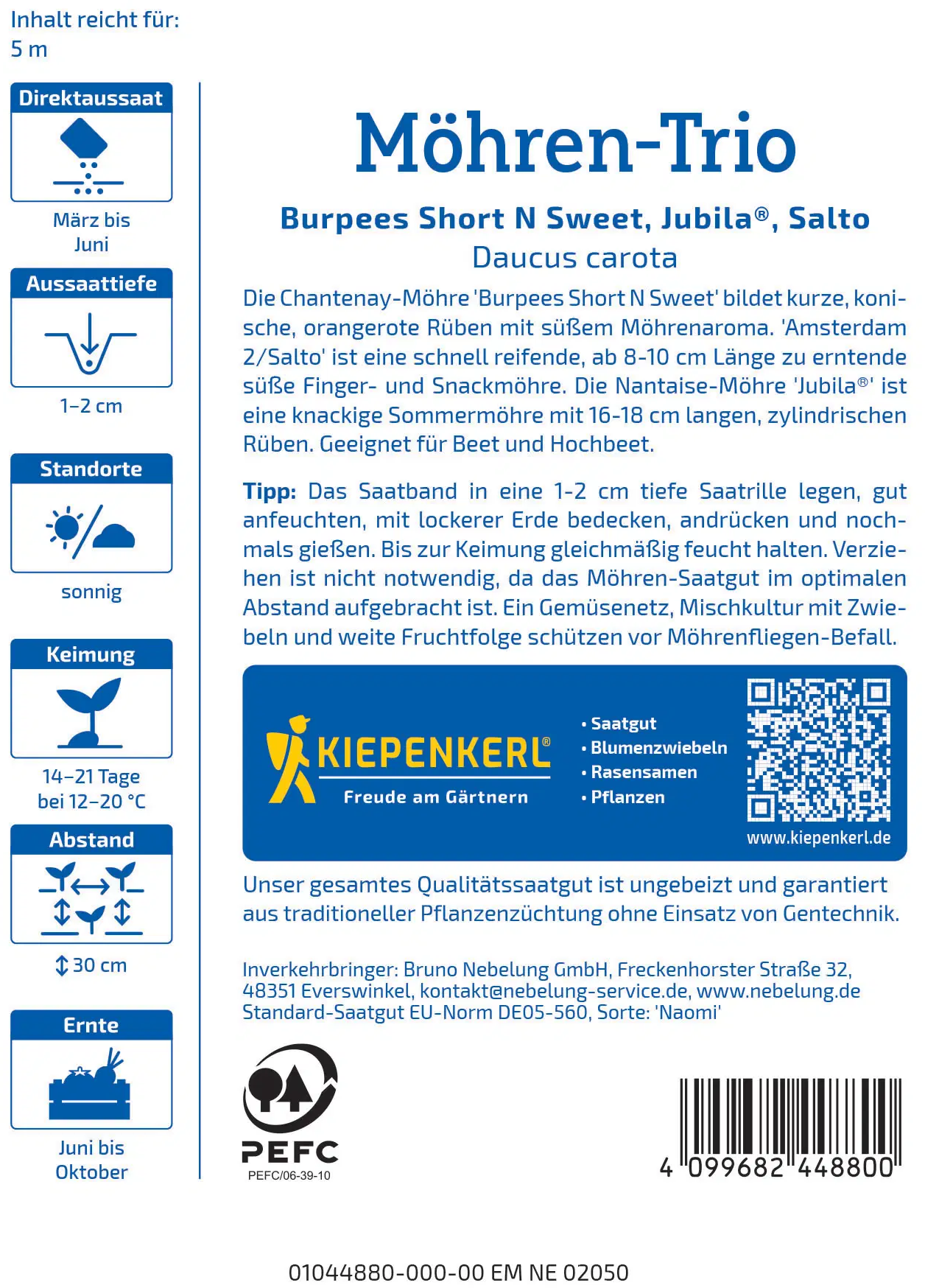 Kiepenkerl Trio Marchewek Short `N`Sweet, Salto, Jubila® - nasiona na taśmie