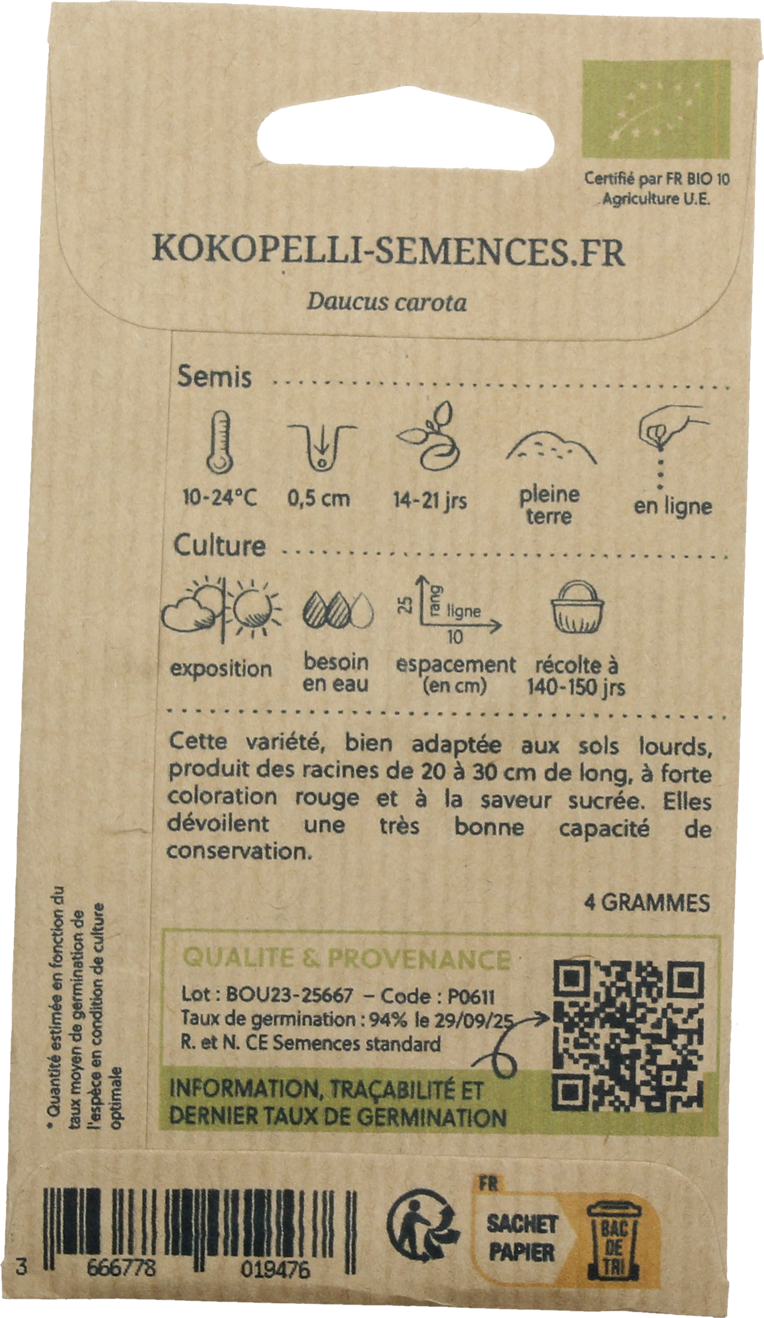 Kokopelli Bio Marchew czerwona "Rodelika", 4 g