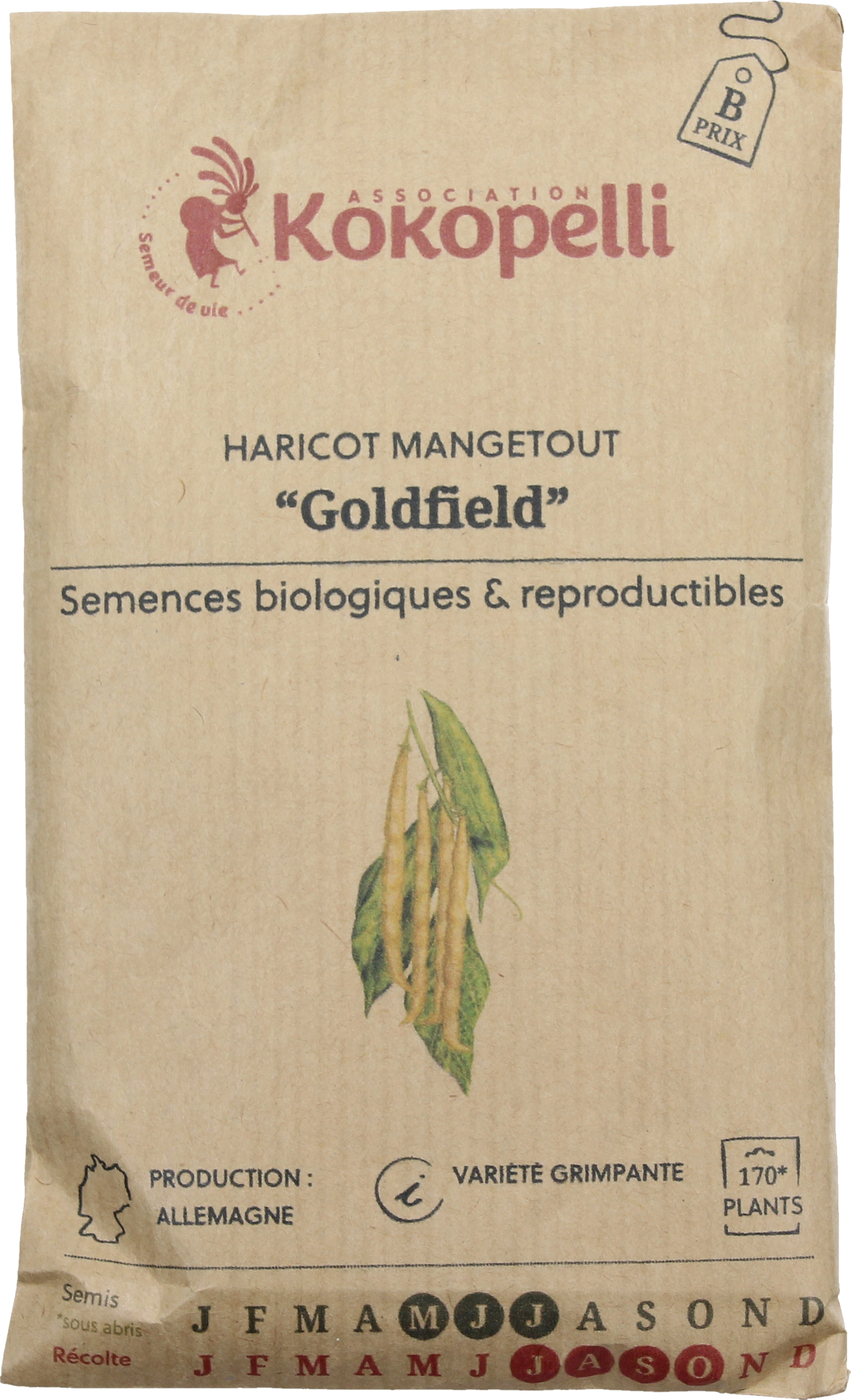 Odmiana Goldfield dostarcza obfitych plonów delikatnych, złotożółtych strąków fasoli do świeżych posiłków. Idealna do ogrodu lub na balkon – wystarczy wysiać, pozwolić jej się piąć i cieszyć się smakiem!