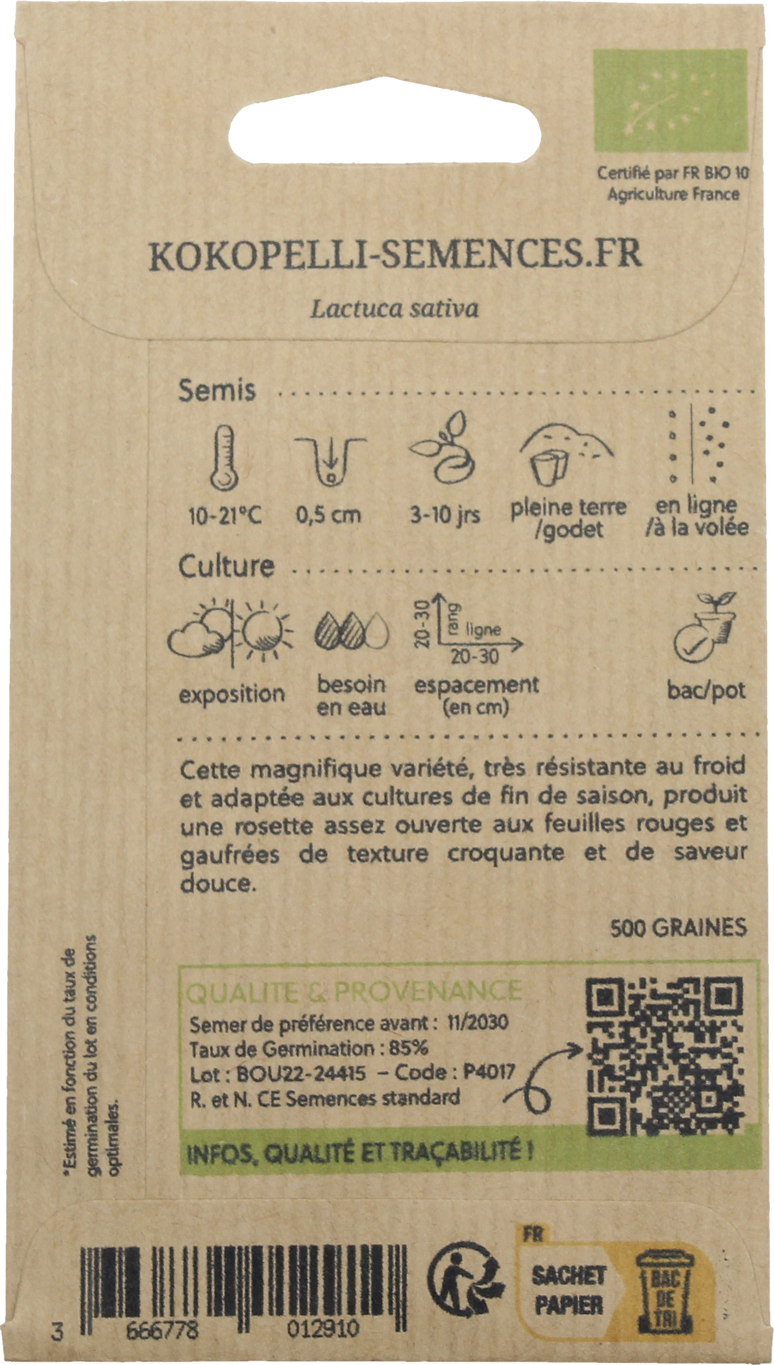 | Producent: | Association Kokopelli, 7 Route de Sabarat, Foret de Castagnes, 09290, Le Mas D'Azil, Francja, professionnels@kokopelli-semences.fr, www.kokopelli-semences.fr |
