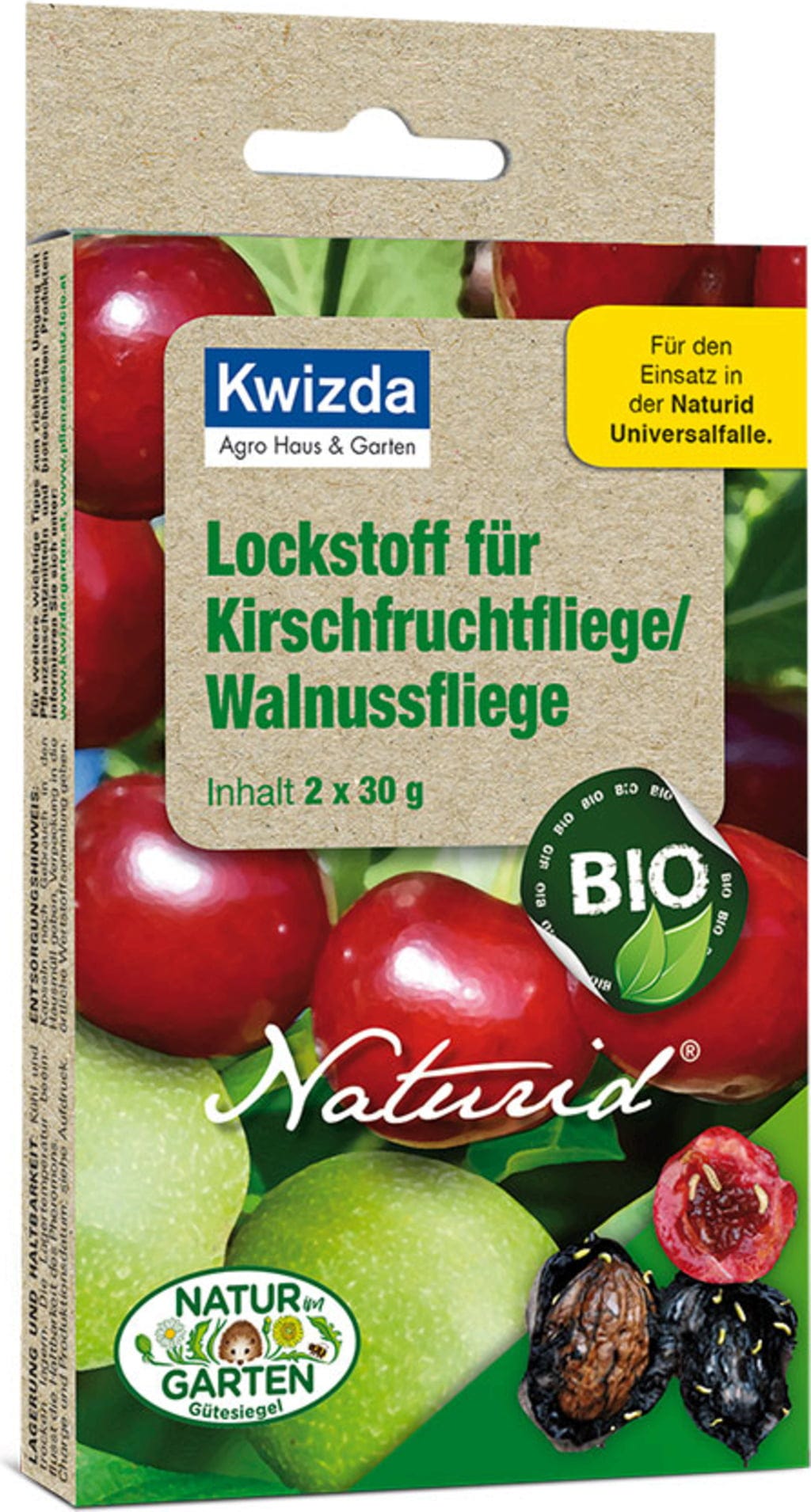 Dzięki atraktantowi Naturid można łatwo i bez agresywnych środków chemicznych chronić zbiory wiśni i orzechów włoskich. Rozpuszczalny w wodzie proszek jest po prostu mieszany z wodą w pułapce i niezawodnie przyciąga muszki czereśniowe i orzechowe. Pozwala to ograniczyć inwazję na wczesnym etapie i naturalnie chronić owoce.