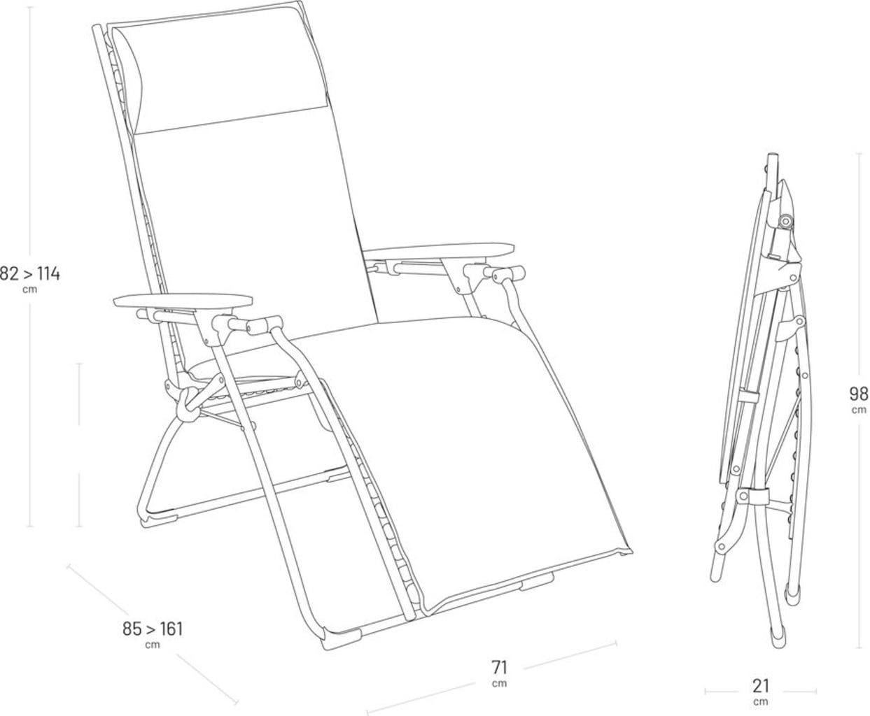 Podaruj sobie wyjątkowy relaks z tym wyjątkowym fotelem rozkładanym EVOLUTION Niksen marki Lafuma, który łączy nowoczesny design z maksymalnym relaksem. Dzięki ergonomicznej pozycji „Zero Gravity” nogi są lekko uniesione nad poziomem serca, zapewniając wyjątkowe uczucie lekkości. Nawet osoby o wzroście do 180 cm będą cieszyć się pełnym komfortem.
