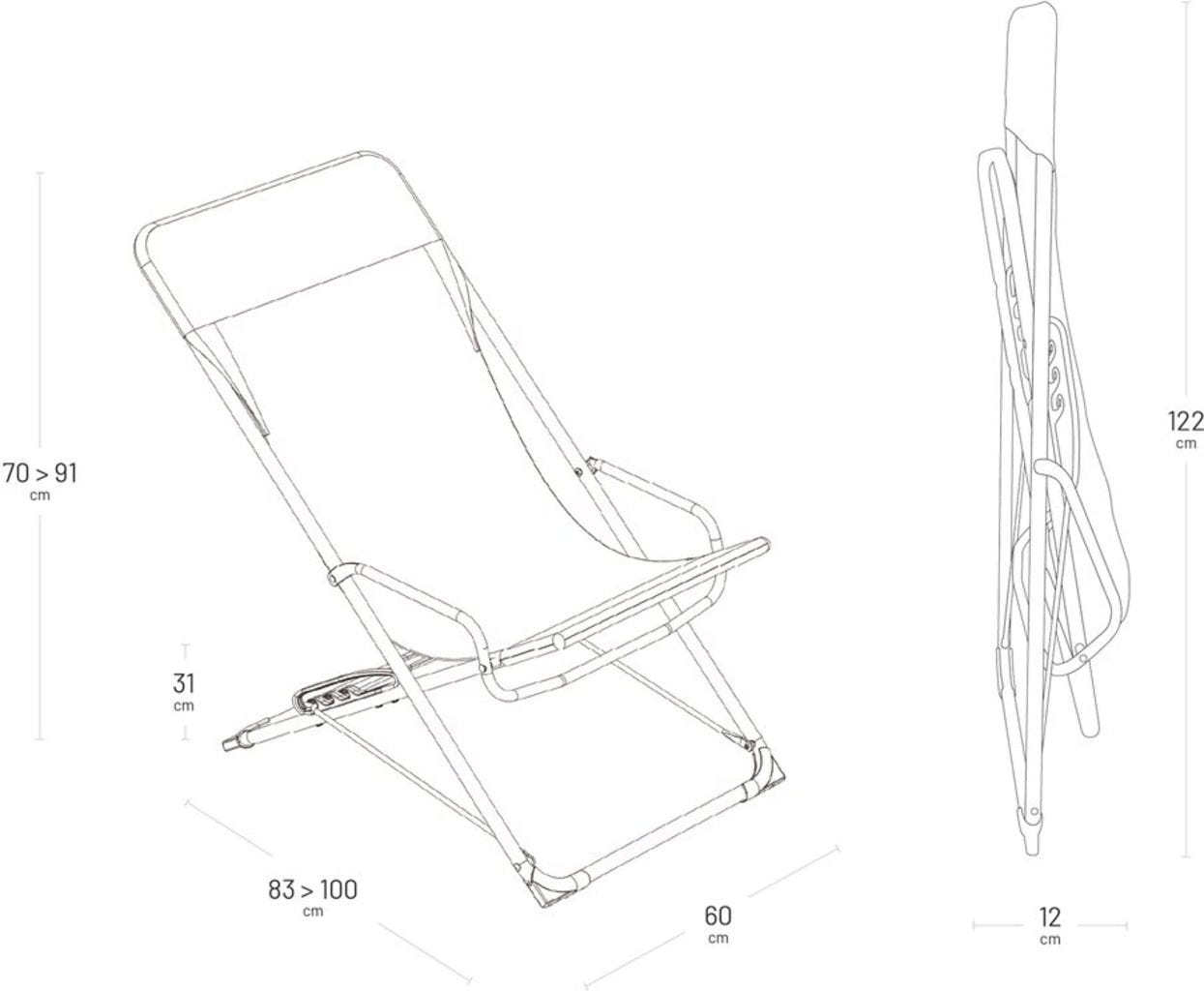 Niezależnie od tego, czy chcesz usiąść w dobrym towarzystwie, zrelaksować się z dobrą książką, czy po prostu rozciągnąć się na krótką drzemkę – bezpieczny system blokowania z praktyczną prowadnicą pozwala płynnie przełączać się między trzema wygodnymi pozycjami. Wysokiej jakości pokrowiec Airlon w marynistycznym stylu doda stylowego akcentu Twojemu balkonowi lub ogrodowi. Krzesło składa się na płasko w mgnieniu oka i zmieści się nawet w najmniejszym zakamarku.