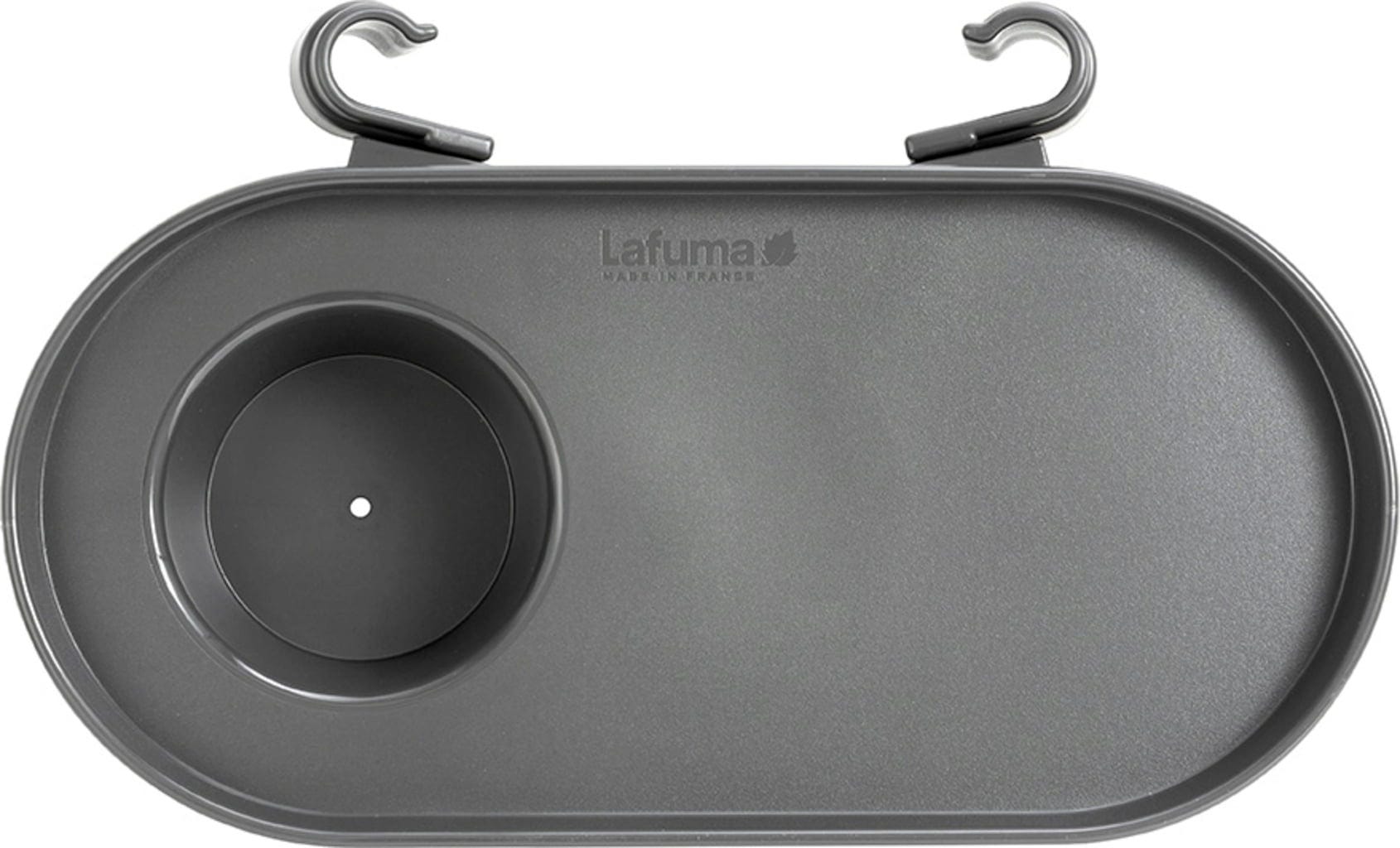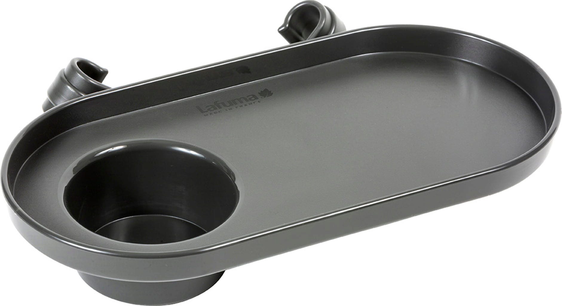 Idealny dodatek do wszystkich rozkładanych foteli Lafuma oferuje bezpieczne podparcie i miejsce na napoje, książki i smartfony. Praktyczną tacę można szybko i łatwo przymocować na wysokości siedziska za pomocą obrotowych uchwytów zatrzaskowych, dzięki czemu można zmieniać jej położenie.