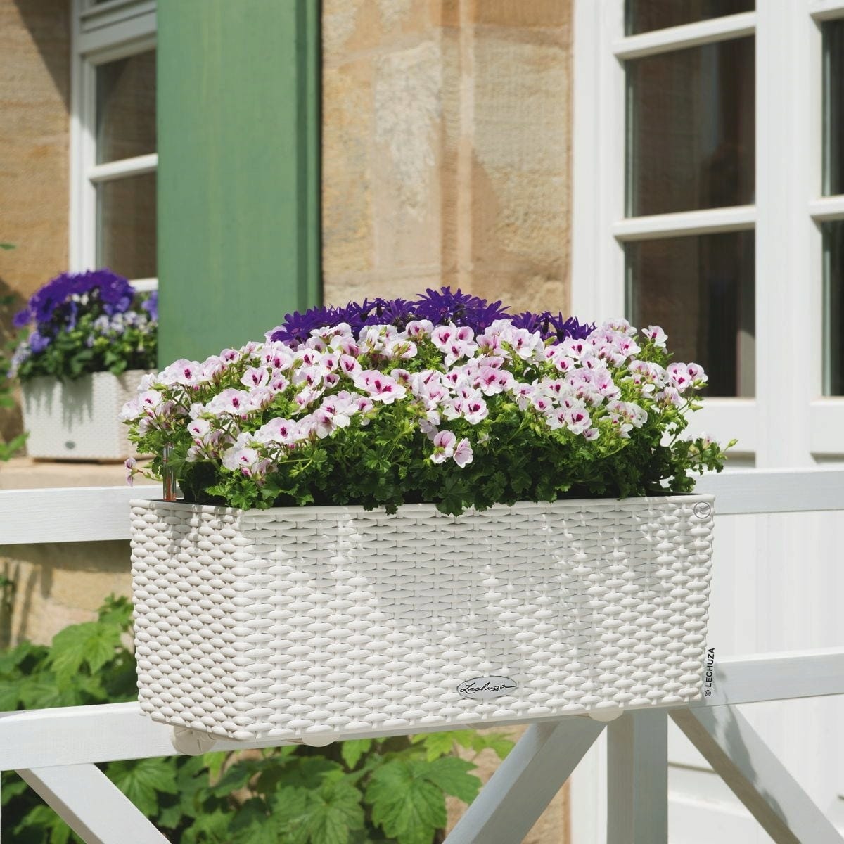 Doniczka balkonowa BALCONERA firmy LECHUZA nie pozwoli roślinom opadać nawet w najgorętsze dni. Dzięki dużym zbiornikom na wodę (3 litry) otrzymują one wystarczającą ilość płynu. Wkład roślinny można łatwo i wygodnie obsadzić na podłodze lub stole, a następnie umieścić w skrzynce balkonowej. Balconera Cottage 50 zachwyca również atrakcyjnym wzornictwem (laureat nagrody reddot design award 2010)