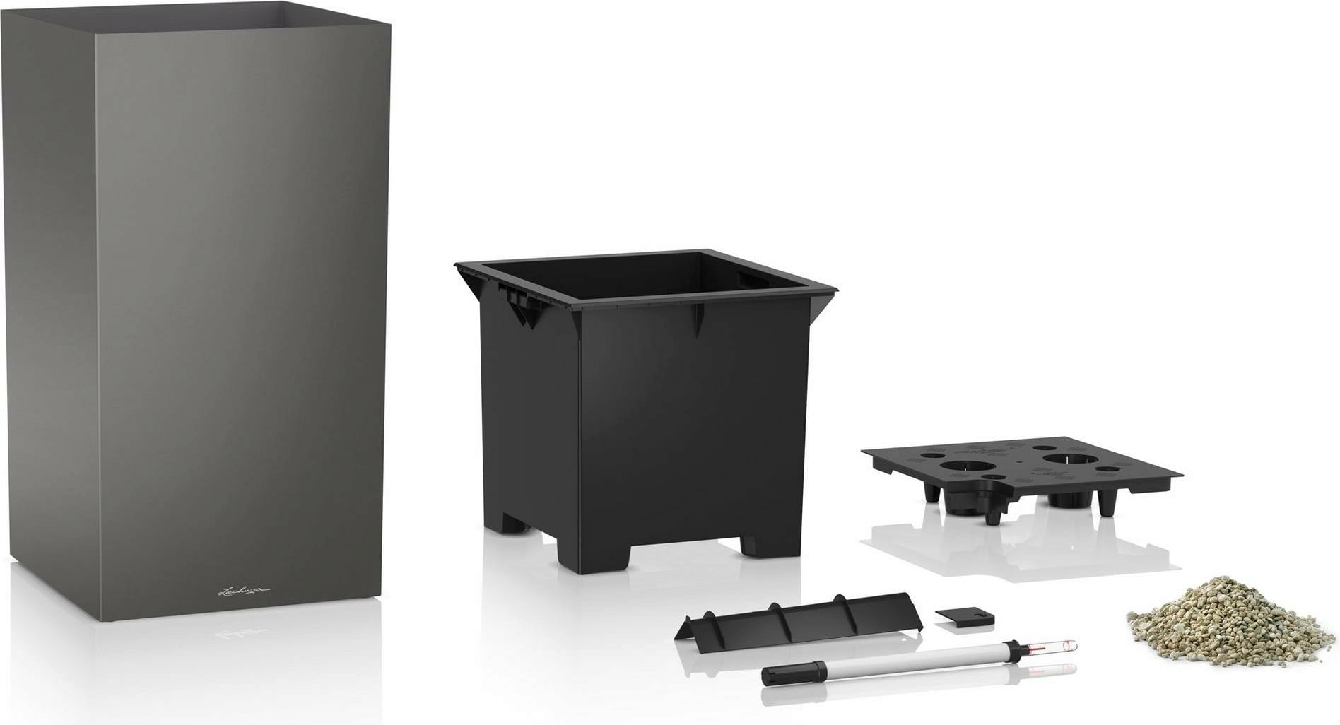 Prosty, nowoczesny design połączony ze stylowymi powierzchniami o wysokim połysku i metalicznymi: Oto CANTO PREMIUM od Lechuza. Praktyczny kompletny zestaw w formie kolumny oferuje nie tylko dużą objętość sadzenia, ale także sprawia, że eleganckie donice są idealnym wyborem do salonów, biur i poczekalni.