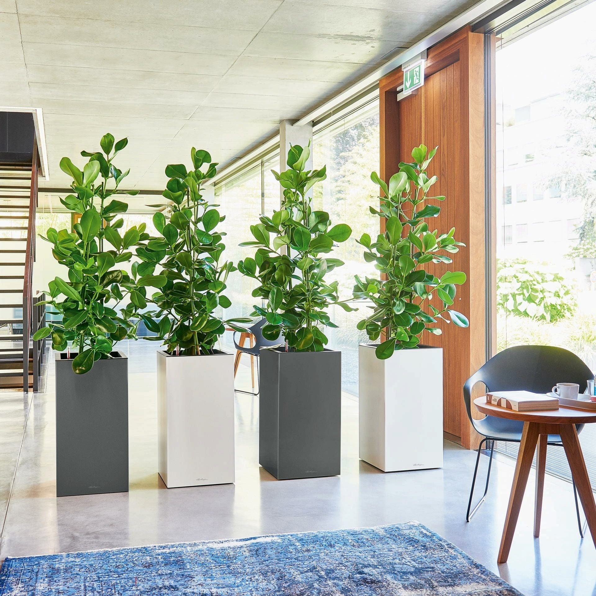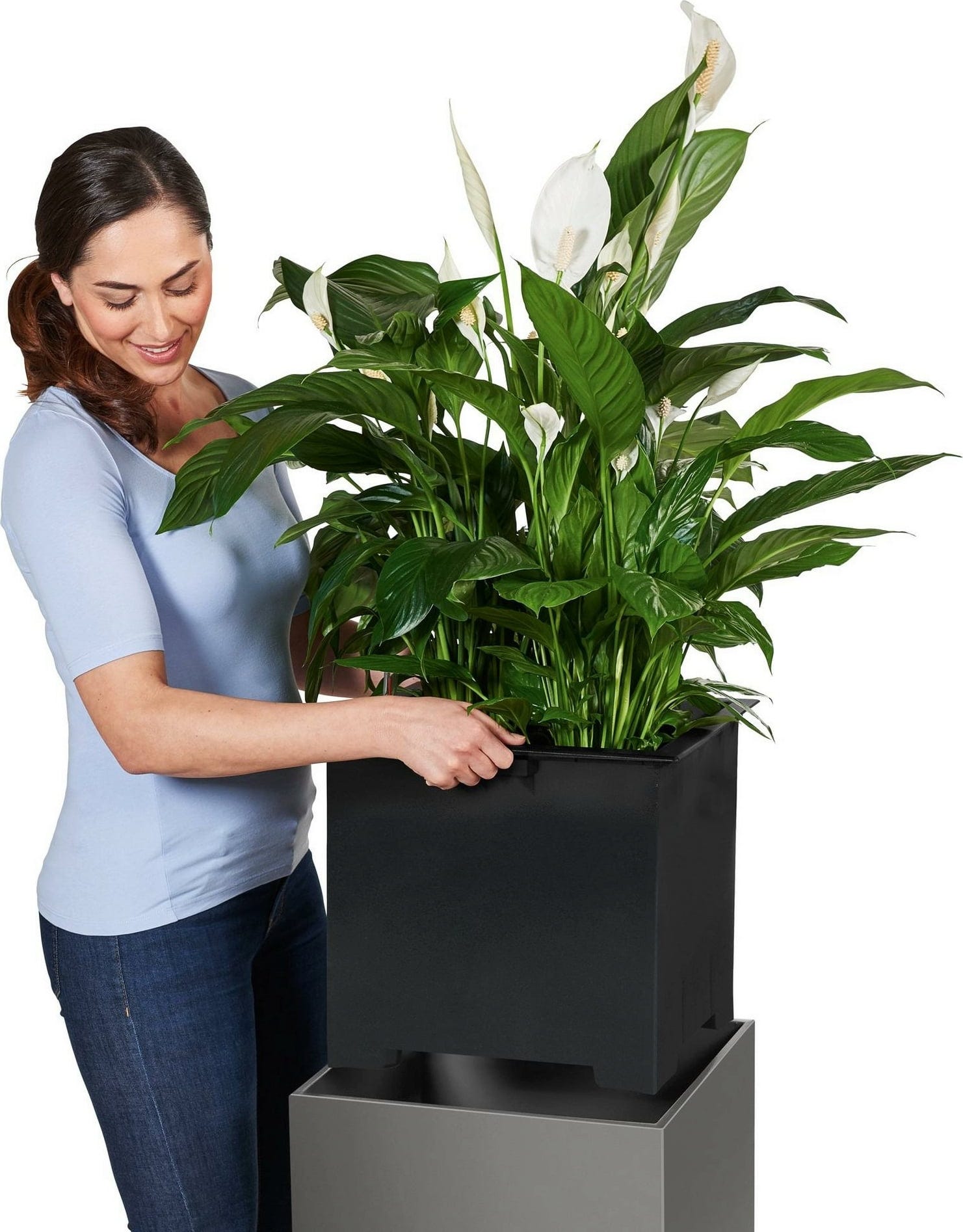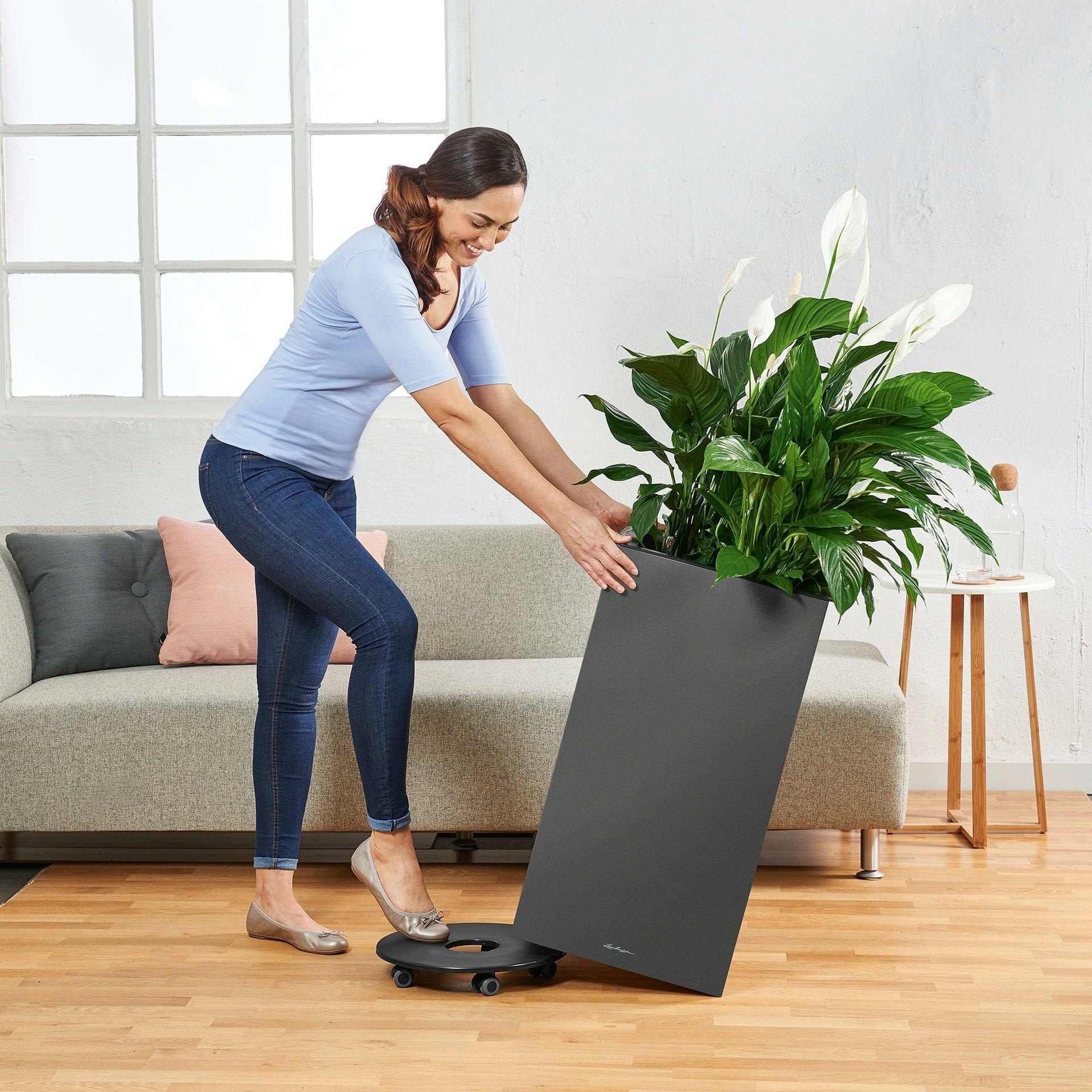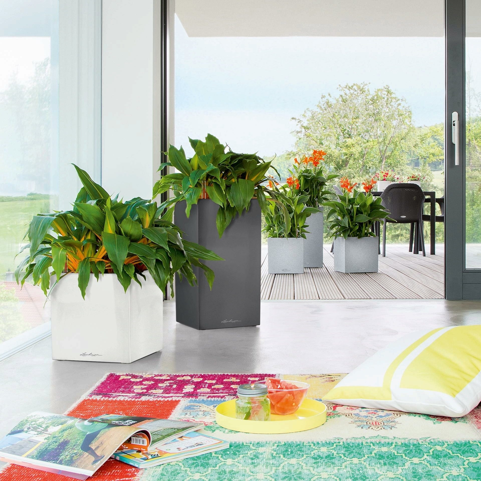Sprytne życie wewnętrzne: Wymienna wkładka na rośliny z praktycznymi wpuszczanymi uchwytami i opatentowanym systemem nawadniania Lechuza nie tylko ułatwia zmianę roślin, ale także zapewnia wspaniałe i witalne rośliny.