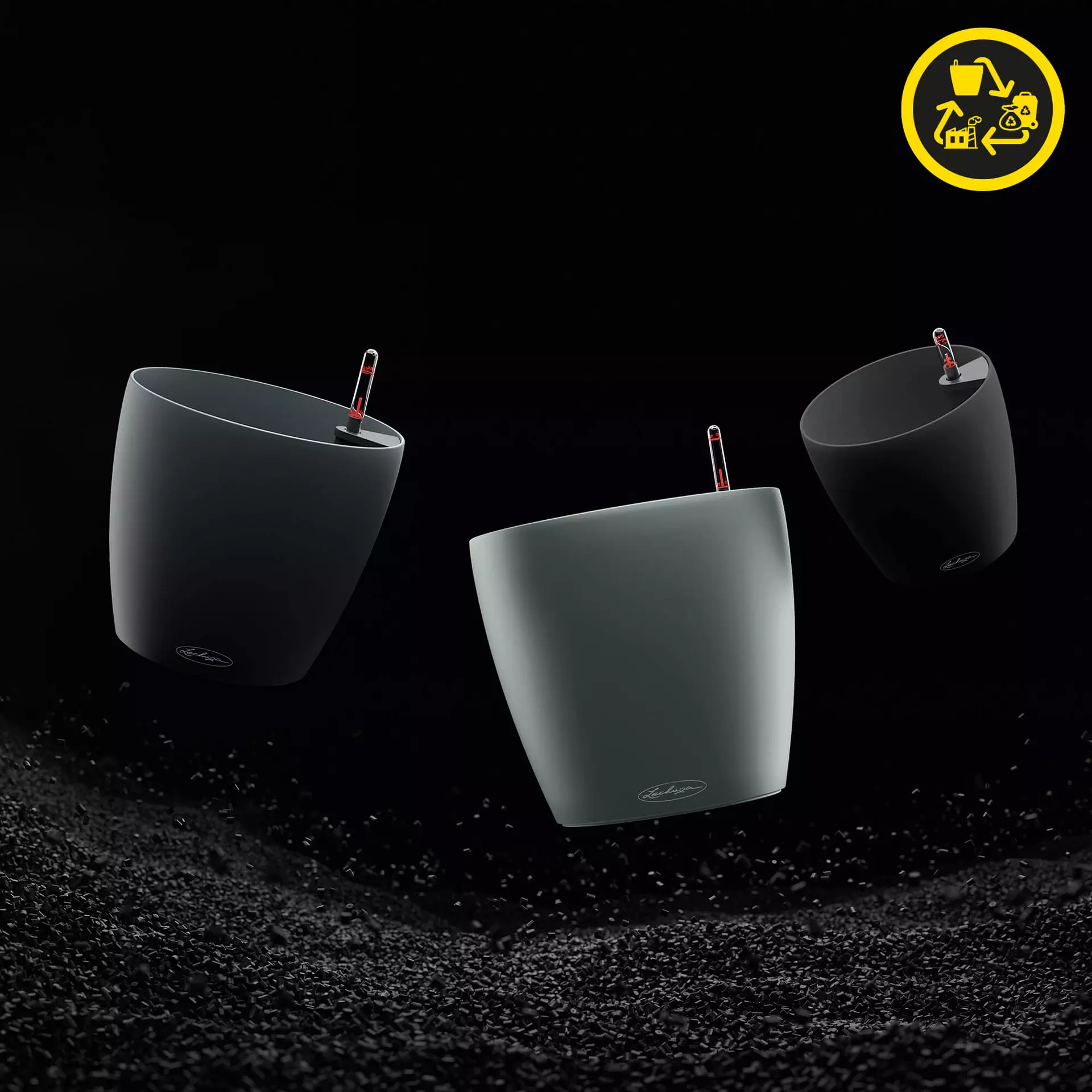 Donice CLASSICO Color firmy Lechuza są wykonane w całości z plastiku pochodzącego z recyklingu. Tworzy to zrównoważoną i redukującą emisję CO2 gospodarkę o obiegu zamkniętym, która przetwarza zarówno własne odpady produkcyjne, jak i odpady z tworzyw sztucznych z żółtego pojemnika na stylowe donice o wyjątkowej jakości Lechuza.