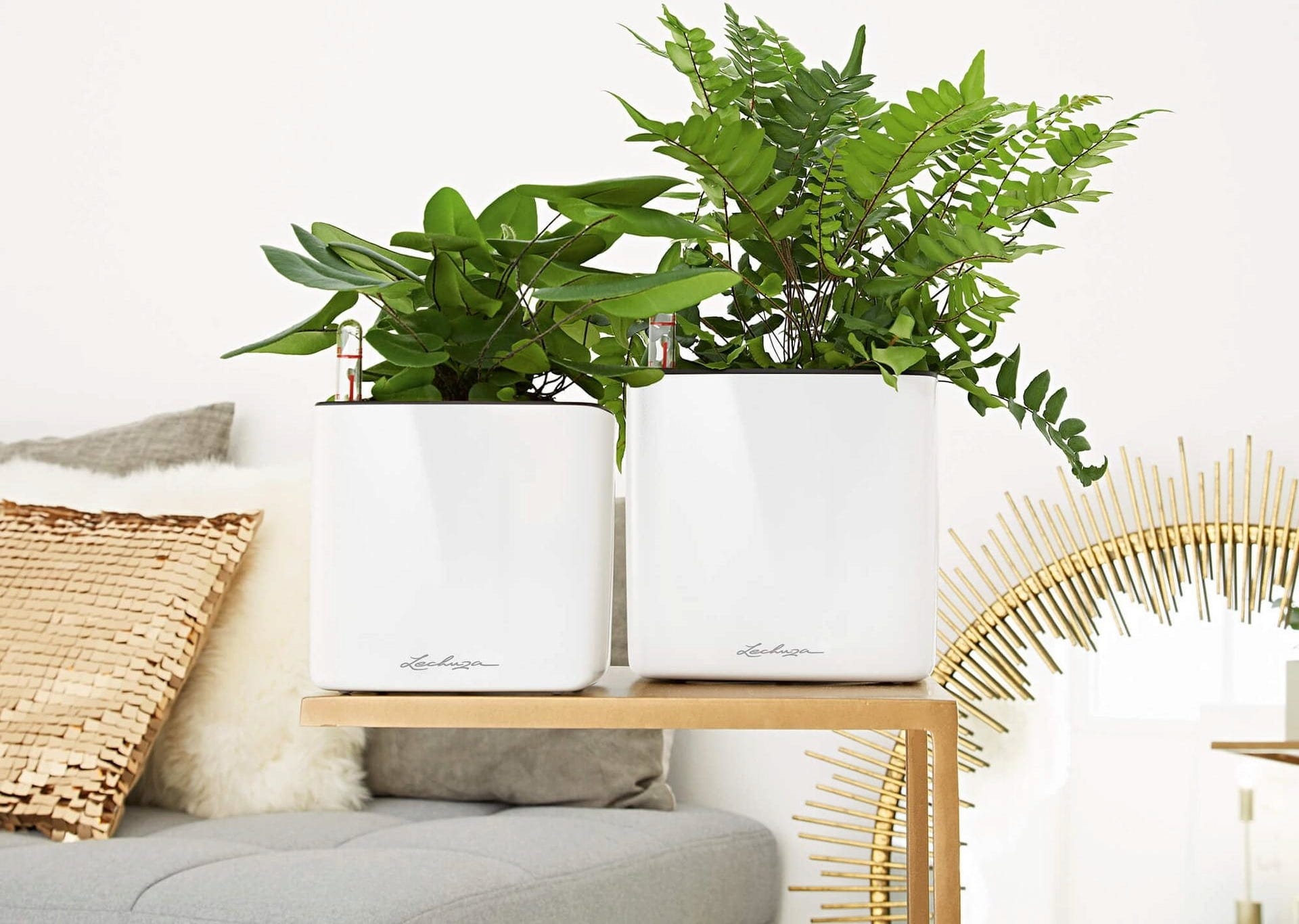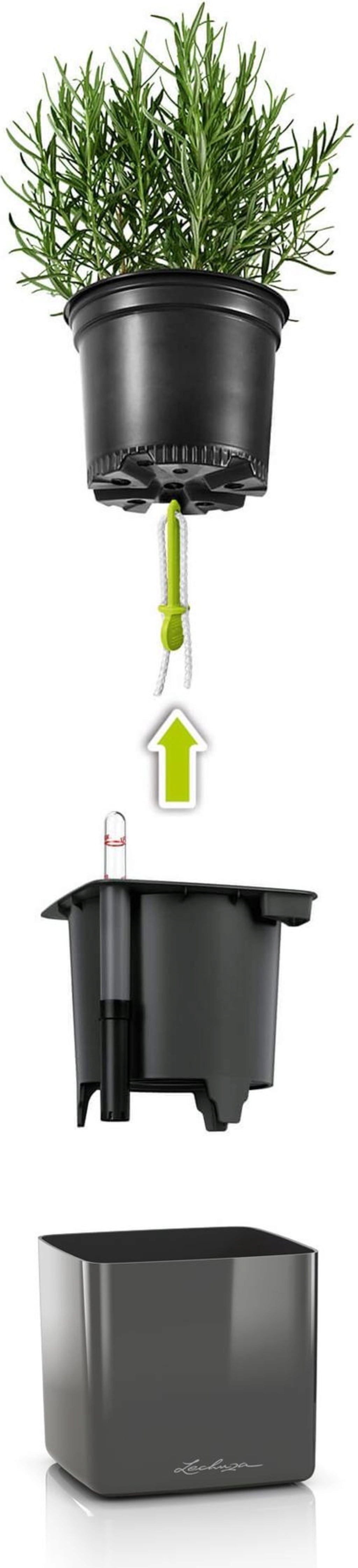 System nawadniania Lechuza dba o rośliny, aby nie zajmowały zbyt wiele czasu. Rośliny można łatwo umieścić w pojemnikach z kolekcji Cube Premium wraz z doniczką bez konieczności czasochłonnego przesadzania. Drążek, który jest wkładany do doniczki od dołu, równomiernie transportuje wilgoć do korzeni. Wskaźnik poziomu wody może być użyty do sprawdzenia, kiedy nadszedł czas na ponowne podlewanie.