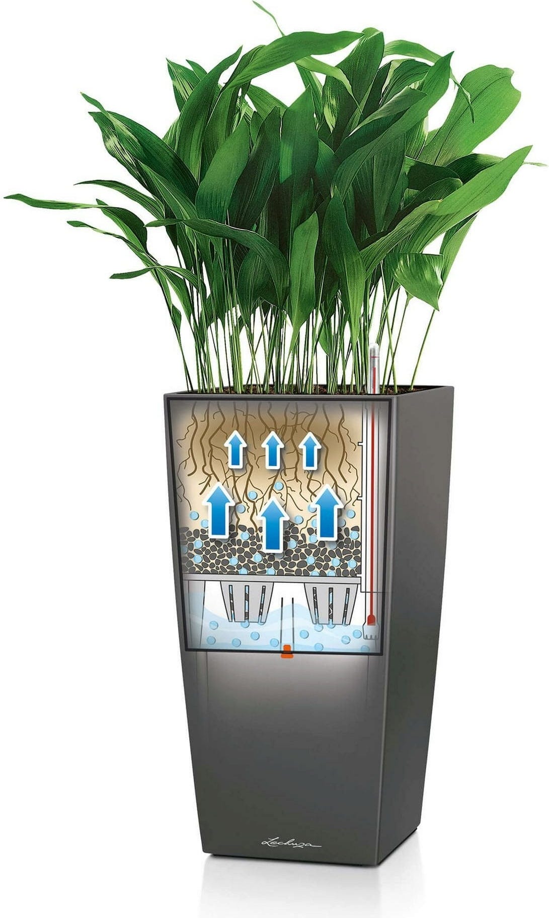 Stylowa donica o eleganckim kształcie kolumny jest dostarczana z wkładem na rośliny z wysuwanymi uchwytami i zestawem do podlewania. Dzięki temu zmiana roślin jest łatwa i nieskomplikowana.