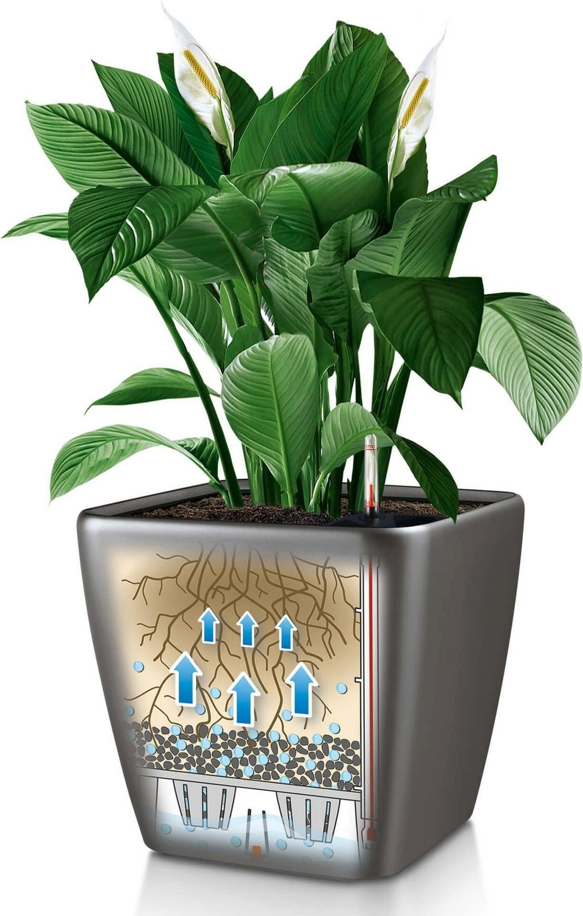 Doniczka "Quadro" z inteligentnym systemem wyróżnia się prostotą, nowoczesnością i elegancją. Dzięki praktycznemu, opatentowanemu systemowi wkładek, rośliny można łatwo wymienić.