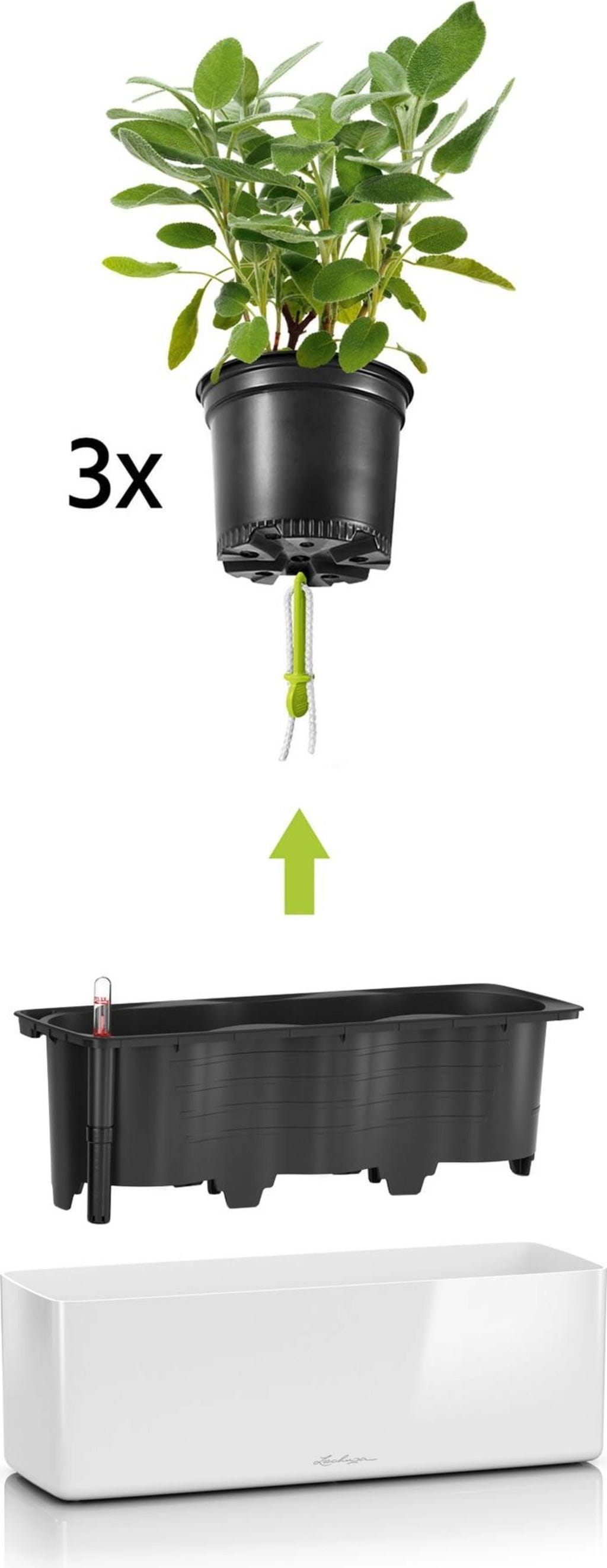 Trzy efektowne kolory o wysokim połysku nadają wnętrzu szczególnego blasku! Ponadto "Cube Premium Triple" oferuje mnóstwo miejsca na kwiaty, zioła i małe krzewy. Dzięki swojemu podłużnemu kształtowi doskonale sprawdza się również jako ogródek ziołowy na parapecie. Absolutny must-have!