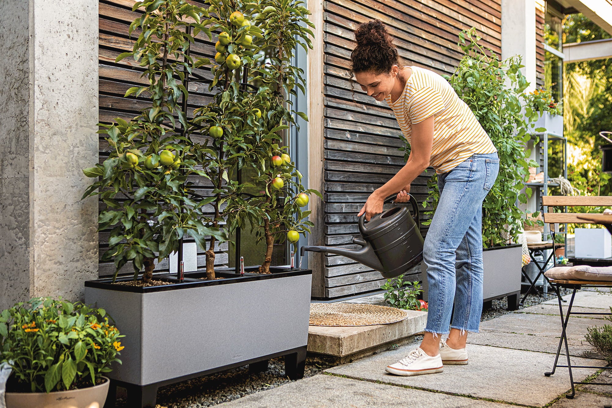 Elegancka donica TRIO Stone 40 zachwyca zarówno ponadczasowym designem o atrakcyjnym wyglądzie kamienia, jak i przemyślanym wnętrzem. Trzy wymienne wkłady do sadzenia wraz z opatentowanym systemem nawadniania sprawiają, że jest to idealny wybór do uprawy roślin owocowych i warzywnych, a także dekoracyjnych kwiatów. Idealna do ogrodów, na tarasy lub większe balkony – jako półwysoka osłona, minigrządka lub skrzynka na kwiaty.