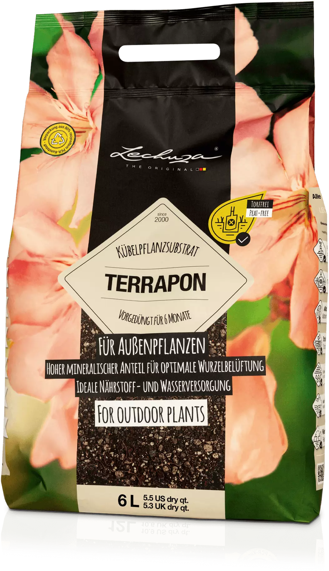 - Zakres dostawy: 1x podłoże roślinne LECHUZA Terra-PON, składniki: Humus, pokruszona keramzyt, pumeks, nawóz
