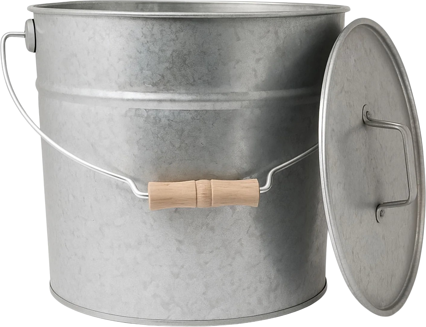 To wiadro jest wykonane w 100% ze stali ocynkowanej ogniowo i ma matową powłokę proszkową - dzięki czemu jest bardzo wytrzymałe i odporne, rdza, ogień i woda nie mogą mu zaszkodzić!