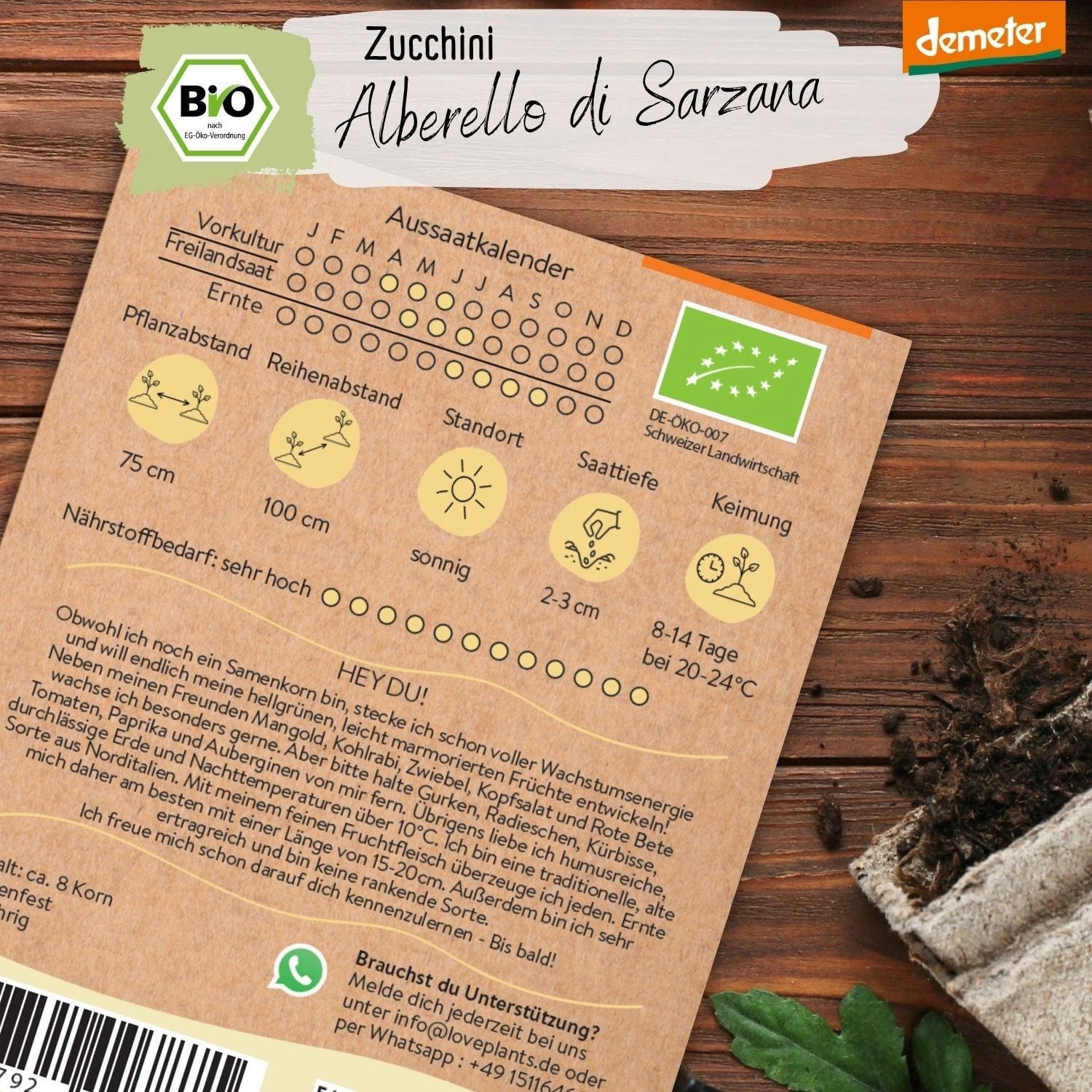 Loveplants Bio Cukinia Alberello di Sarzana Zucchetti, 8 ziaren