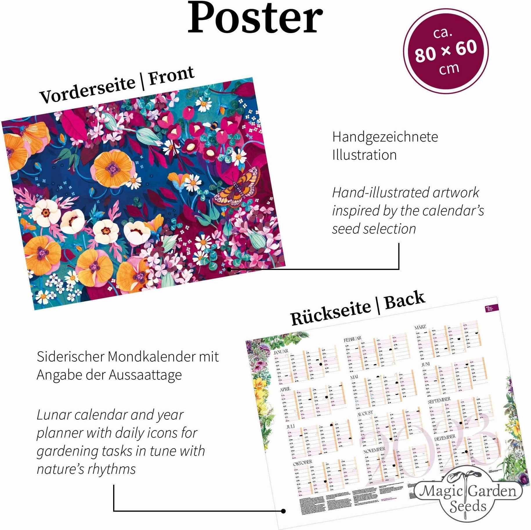 Aby ułatwić Ci siew, w zestawie znajduje się również duży plakat-kalendarz na nadchodzący rok, dzięki któremu możesz rozpocząć prace ogrodowe w rytmie natury. Dołączona składana kartka zostawia miejsce na osobiste życzenia. W starannie ilustrowanej instrukcji wysiewu znajdziesz portrety 95 roślin, a także mnóstwo porad i trików.