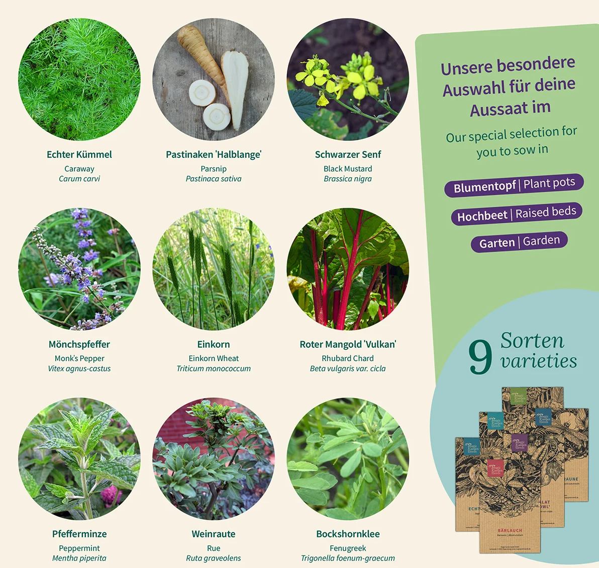 - 9 różnych odmian nasion