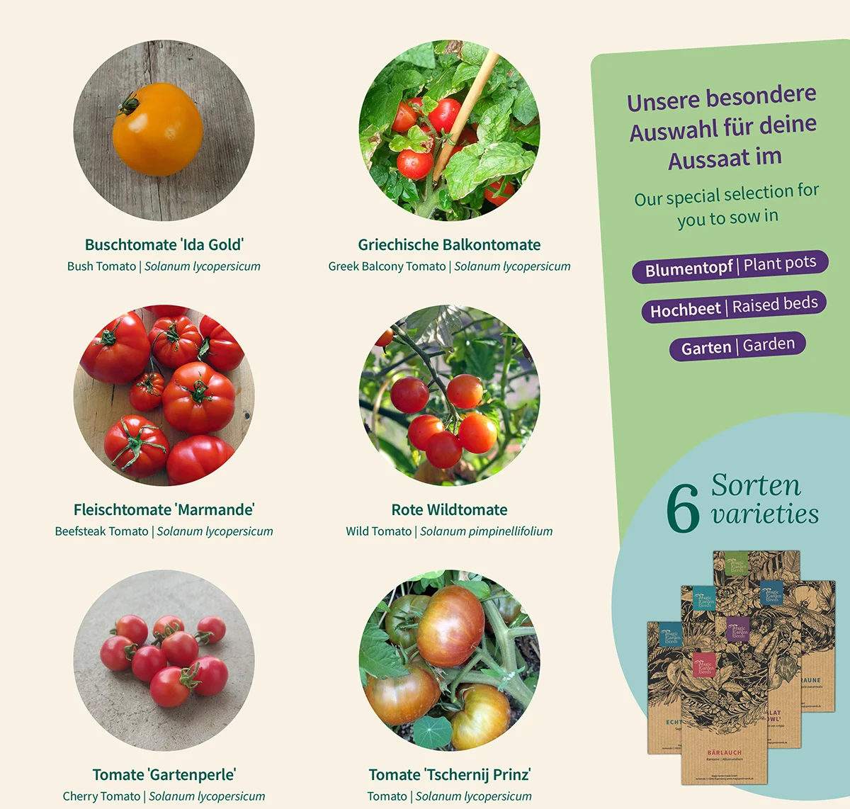 - Zestaw z 6 różnymi odmianami nasion pomidorów