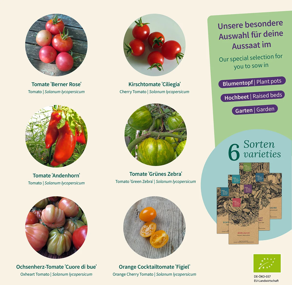 Ten starannie skomponowany zestaw nasion to pozycja obowiązkowa dla miłośników pomidorów, ponieważ zawiera 6 historycznych odmian pomidorów w jakości Bio, które są łatwe w uprawie i oferują niezrównane, kolorowe doznania smakowe.