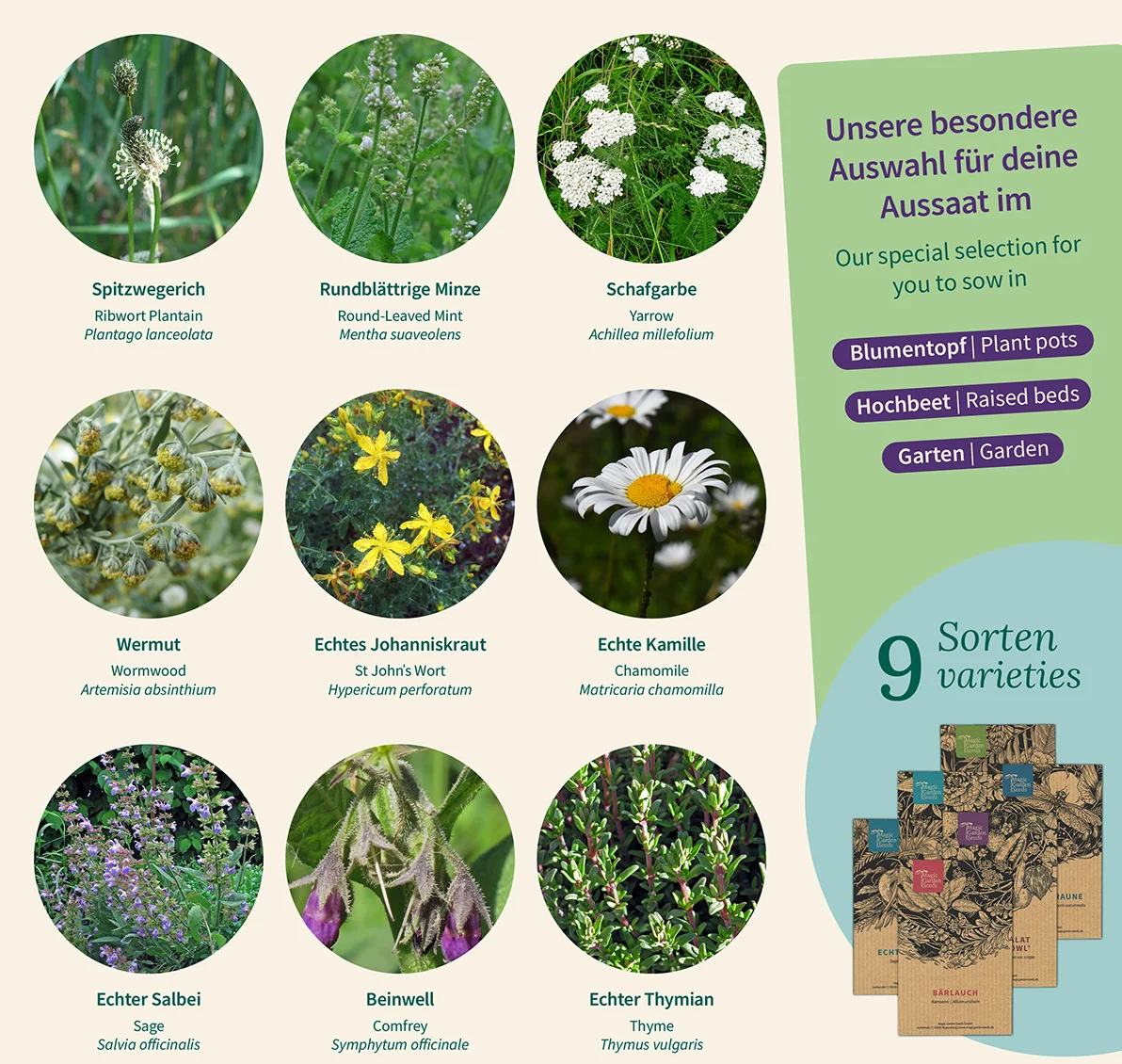 - Zestaw z 9 różnymi rodzajami nasion ziół