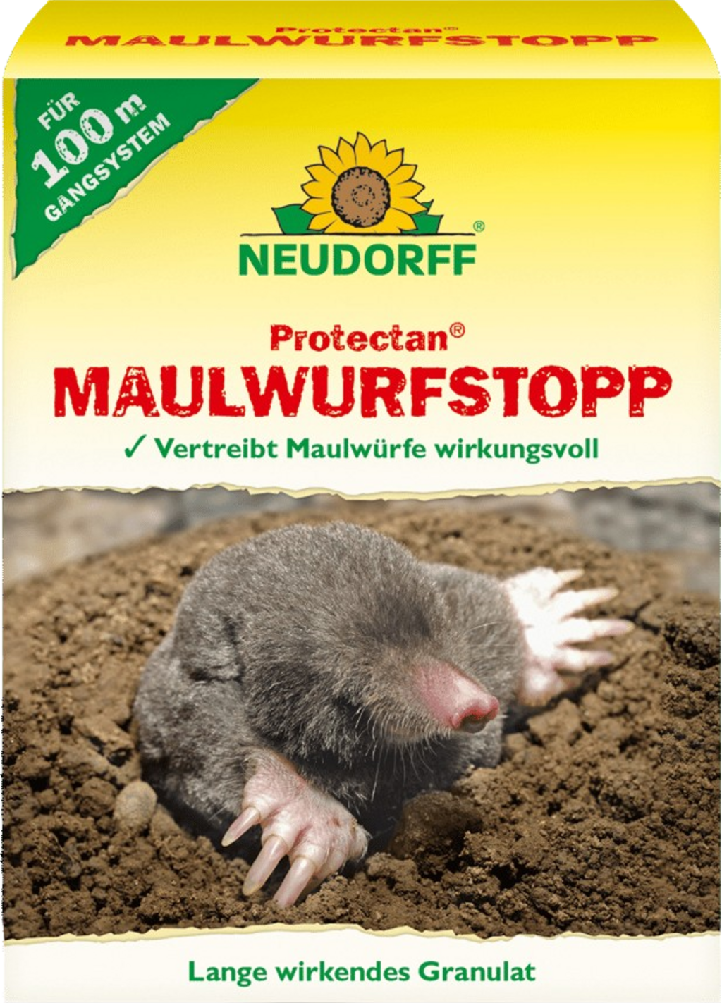 Krety, choć tworzą irytujące kopce ziemi, nie są szkodnikami! Zjadają pędraki żyjące w ziemi i są objęte ochroną gatunkową. Jeśli jednak ich korytarze i kopce są niepożądane, te futrzane stworzenia można łatwo odstraszyć za pomocą preparatu Maulwurf-Stopp. Zawarte w nim substancje zapachowe są przez krety omijane, dzięki czemu szukają sobie innego miejsca do kopania i rycia.