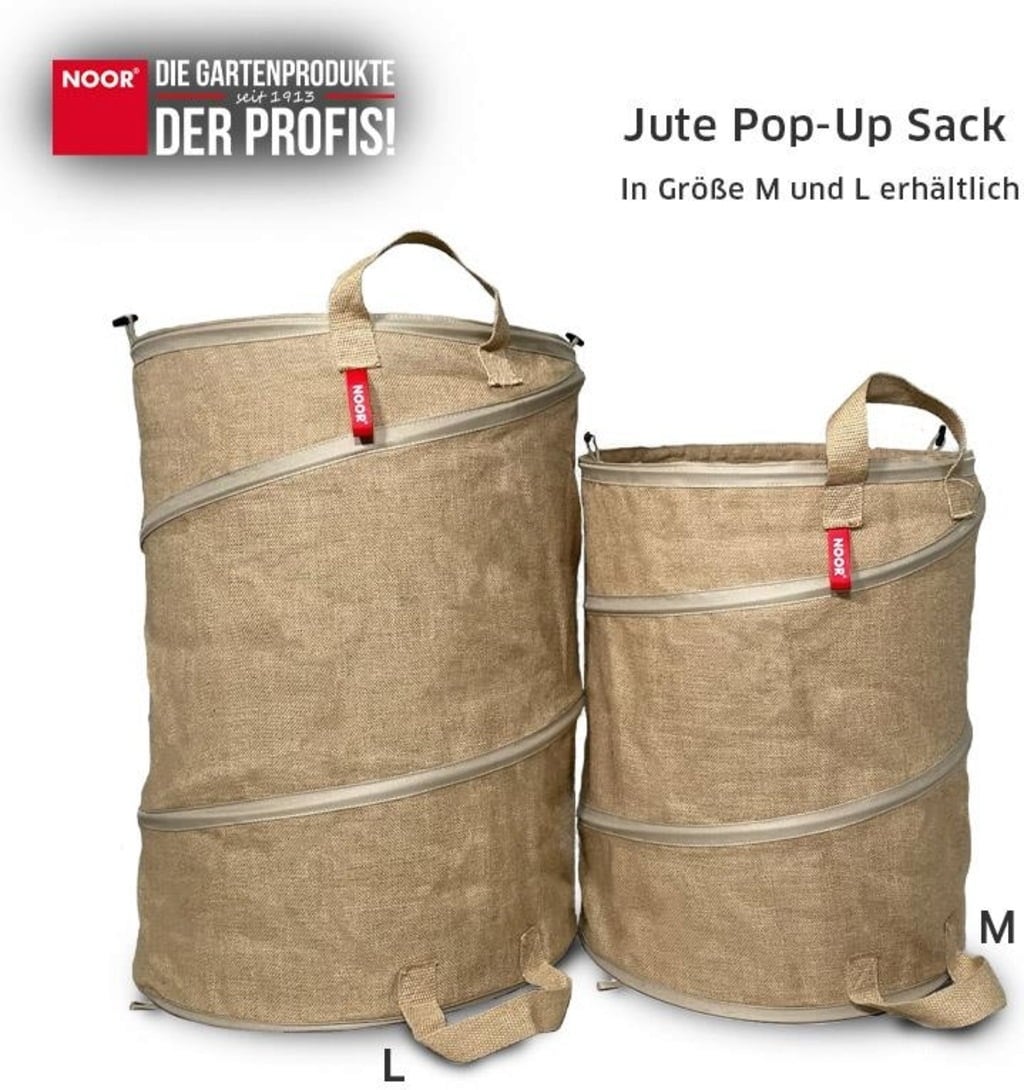 Worek pop-up wykonany z naturalnej juty jest wiernym pomocnikiem podczas prac ogrodowych. Dzięki zintegrowanej sprężynie zachowuje swój kształt nawet po opróżnieniu, co ułatwia jego napełnianie. Można go używać do zbierania liści, skoszonej trawy lub orzechów i owoców. Wytrzymałe uchwyty po bokach ułatwiają transport. Po zakończeniu pracy worek można po prostu skompresować i schować, aby zaoszczędzić miejsce.