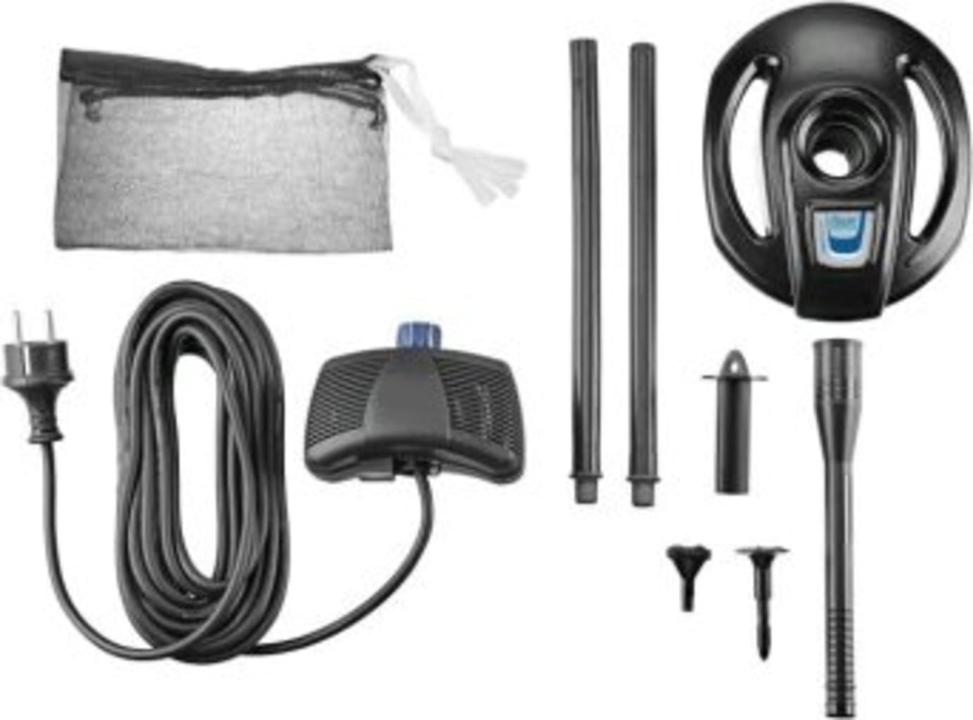 Funkcja elementu wodnego: Latem urządzenie można wyposażyć w nasadkę dyszy, aby stworzyć atrakcyjny efekt wodny. Ta dysza generuje ruch powierzchni wody w stawie, który jest nie tylko estetyczny, ale także wspomaga dopływ tlenu do wody. Przyczynia się to do poprawy jakości wody.
