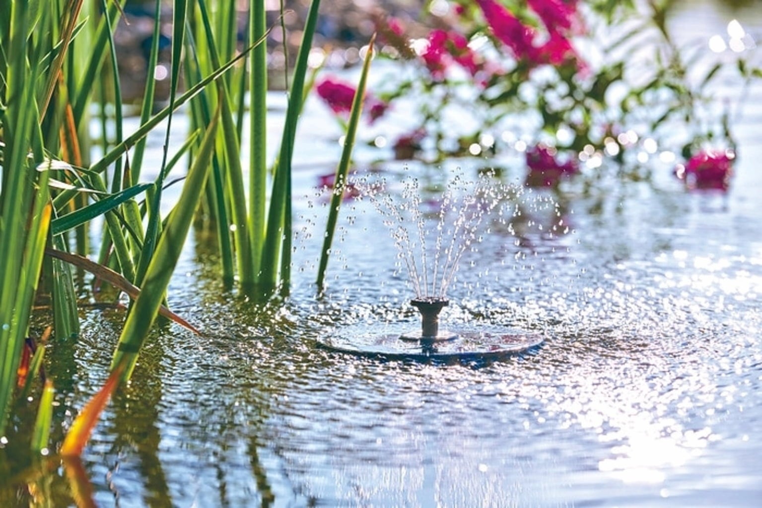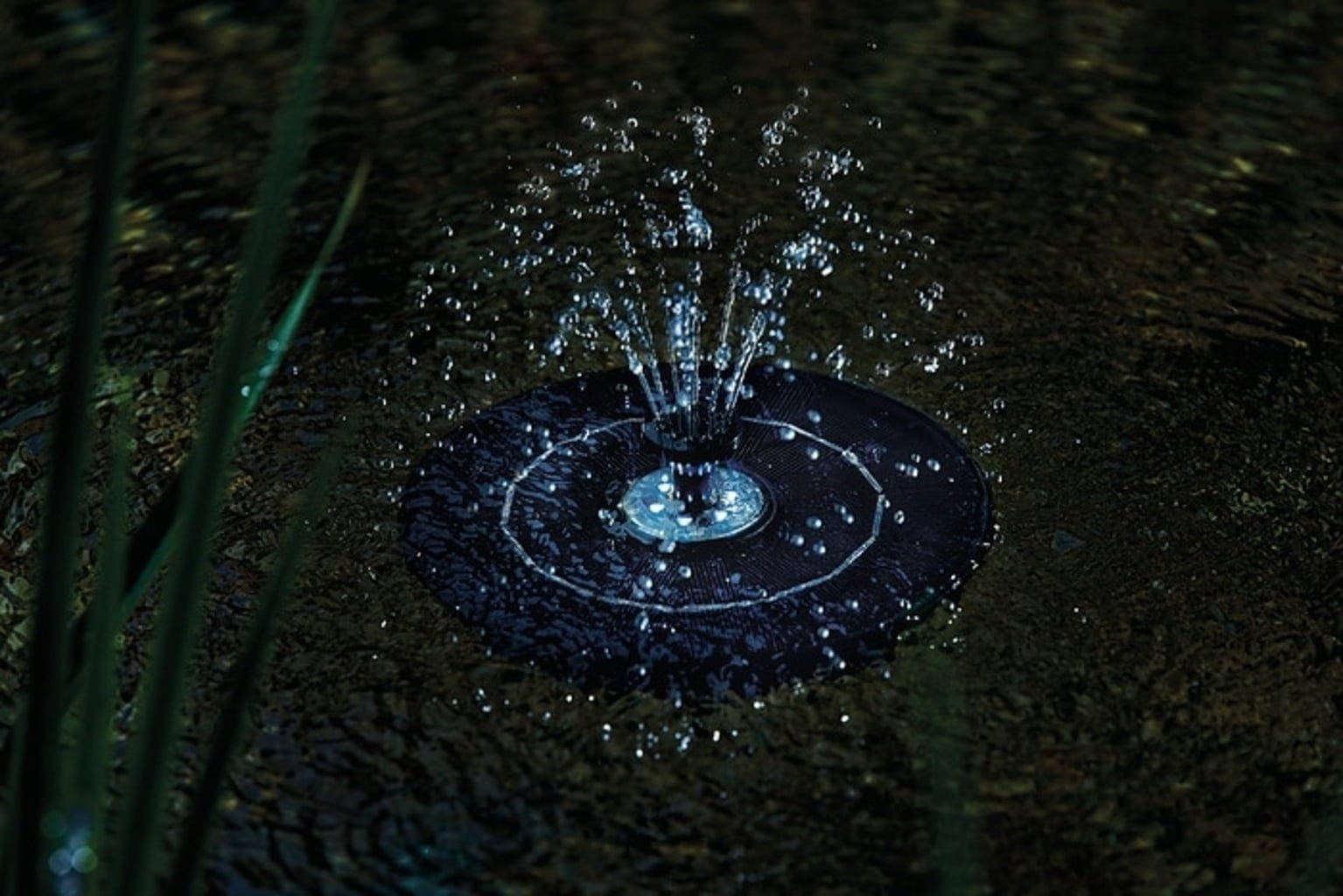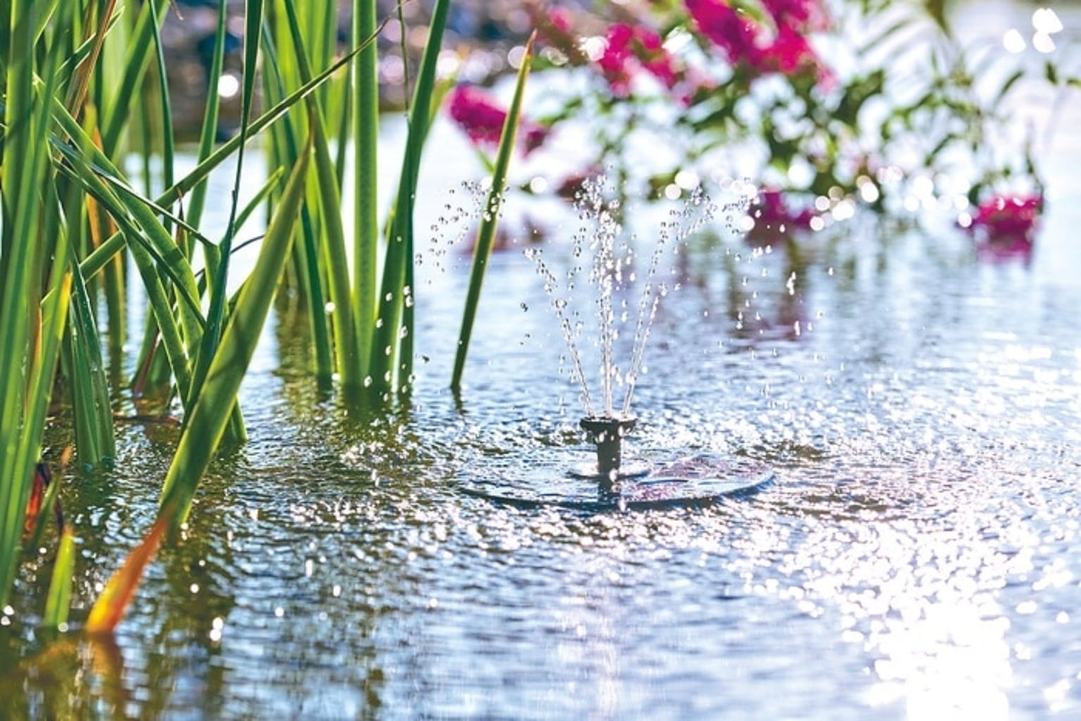 Dzięki zintegrowanemu panelowi słonecznemu, wyspa PondoSolar LED tworzy piękny efekt wodny z fontannami o wysokości do 50 cm, których wygląd można dostosować do własnych upodobań dzięki czterem różnym dyszom. Diody LED, które uruchamiają się automatycznie o zmierzchu i oświetlają fontannę, zapewniają to coś - wspaniałą atrakcję dla Twojego oczka wodnego!