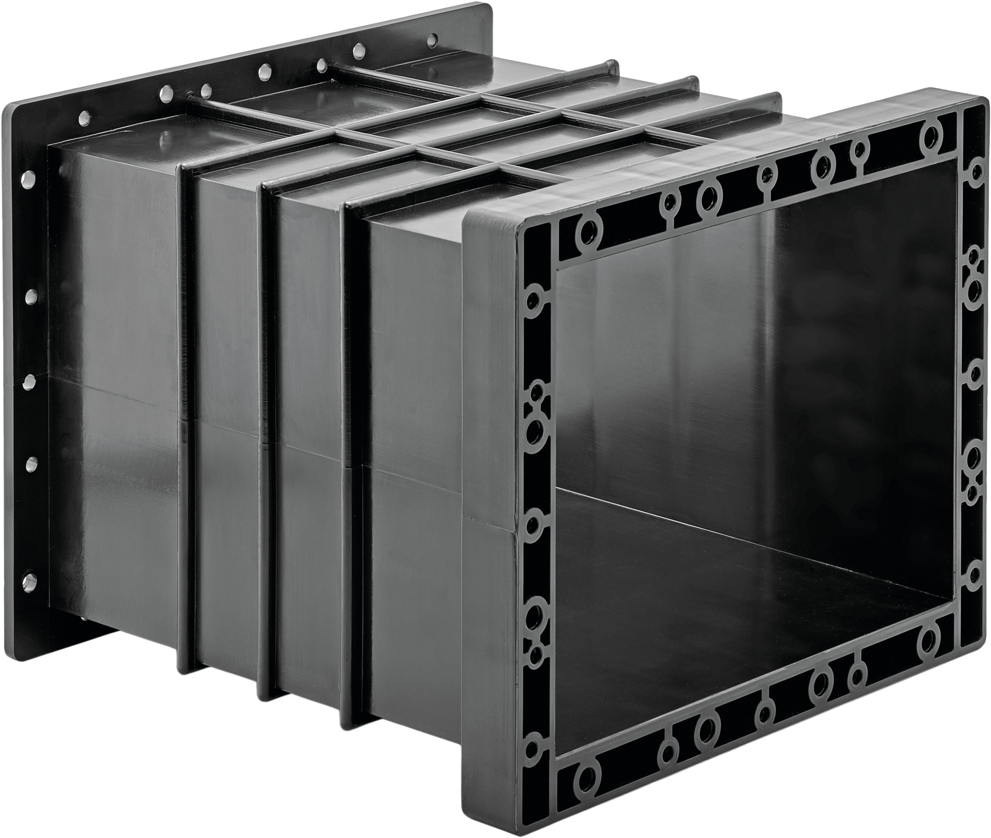 Solidna konstrukcja płynnie łączy się między obudową skimmera a wlotem, co gwarantuje zachowanie trwale szczelnego i stabilnego połączenia.