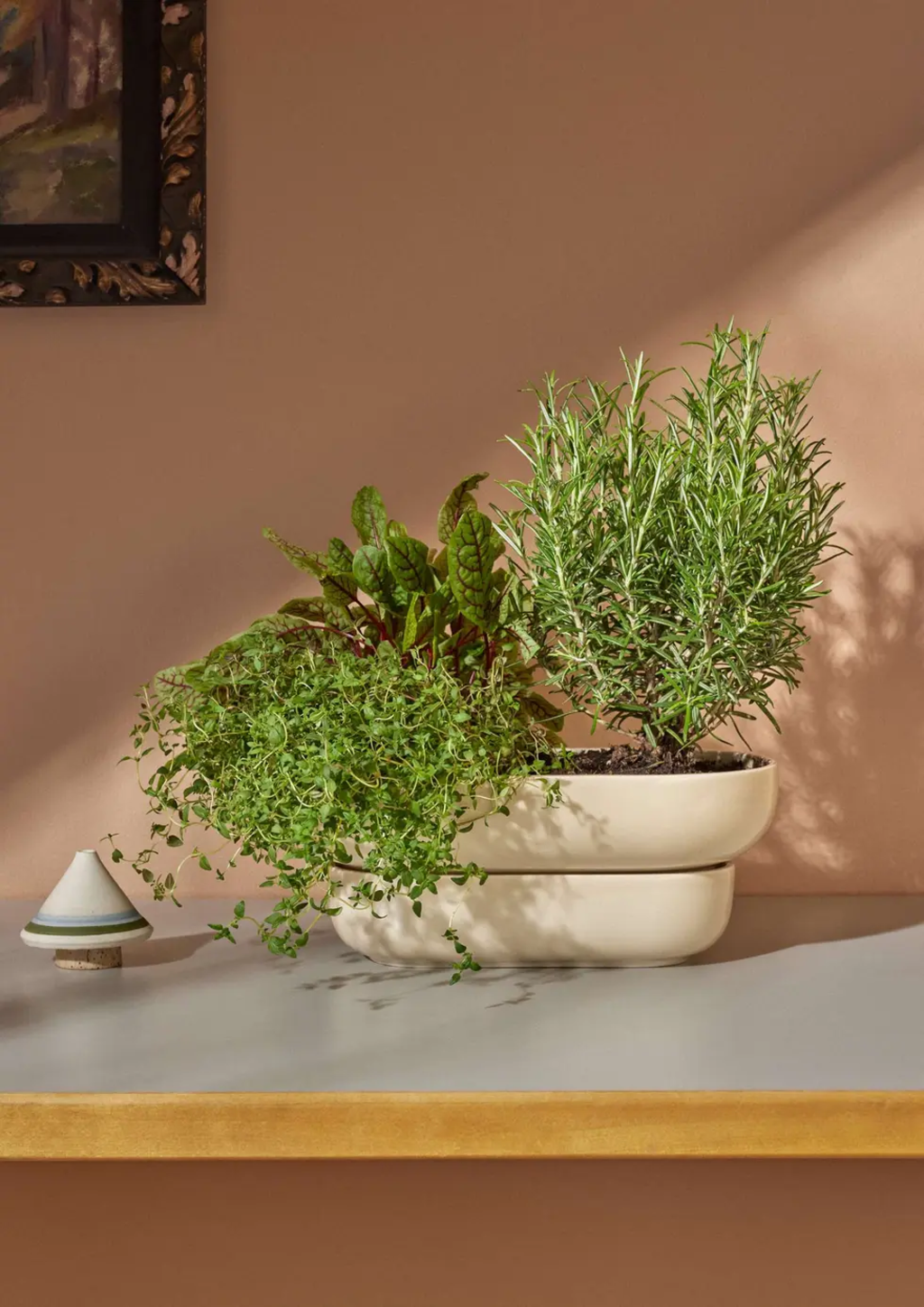 Podłużna donica oferuje miejsce na kreatywne aranżacje z małymi roślinami i jest idealna na parapet. Dzięki dwuczęściowej konstrukcji z dużym zbiornikiem na wodę, woda pozostaje tam, gdzie jej miejsce - a rośliny pozostają zdrowe.