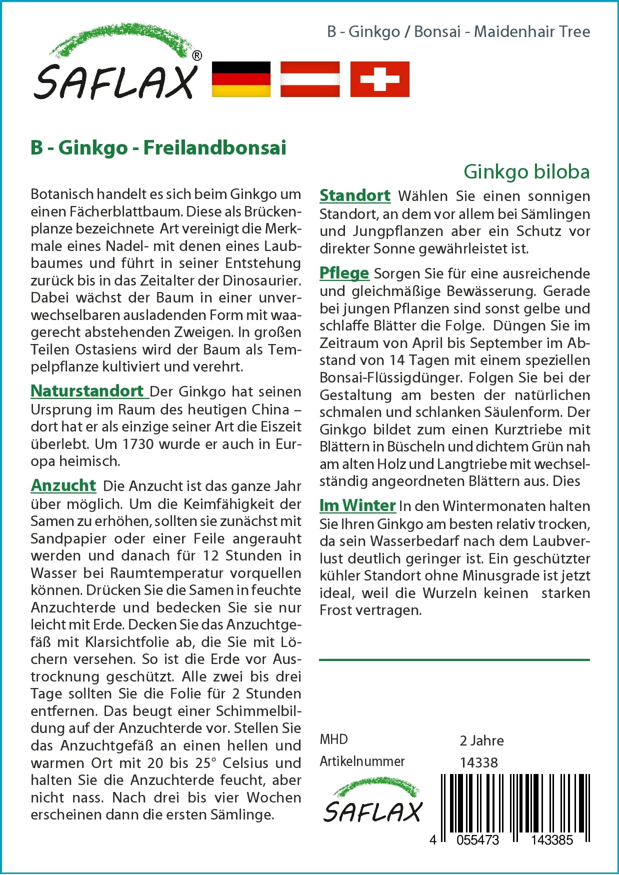 Saflax Bonsai - Ginkgo / Miłorząb japoński