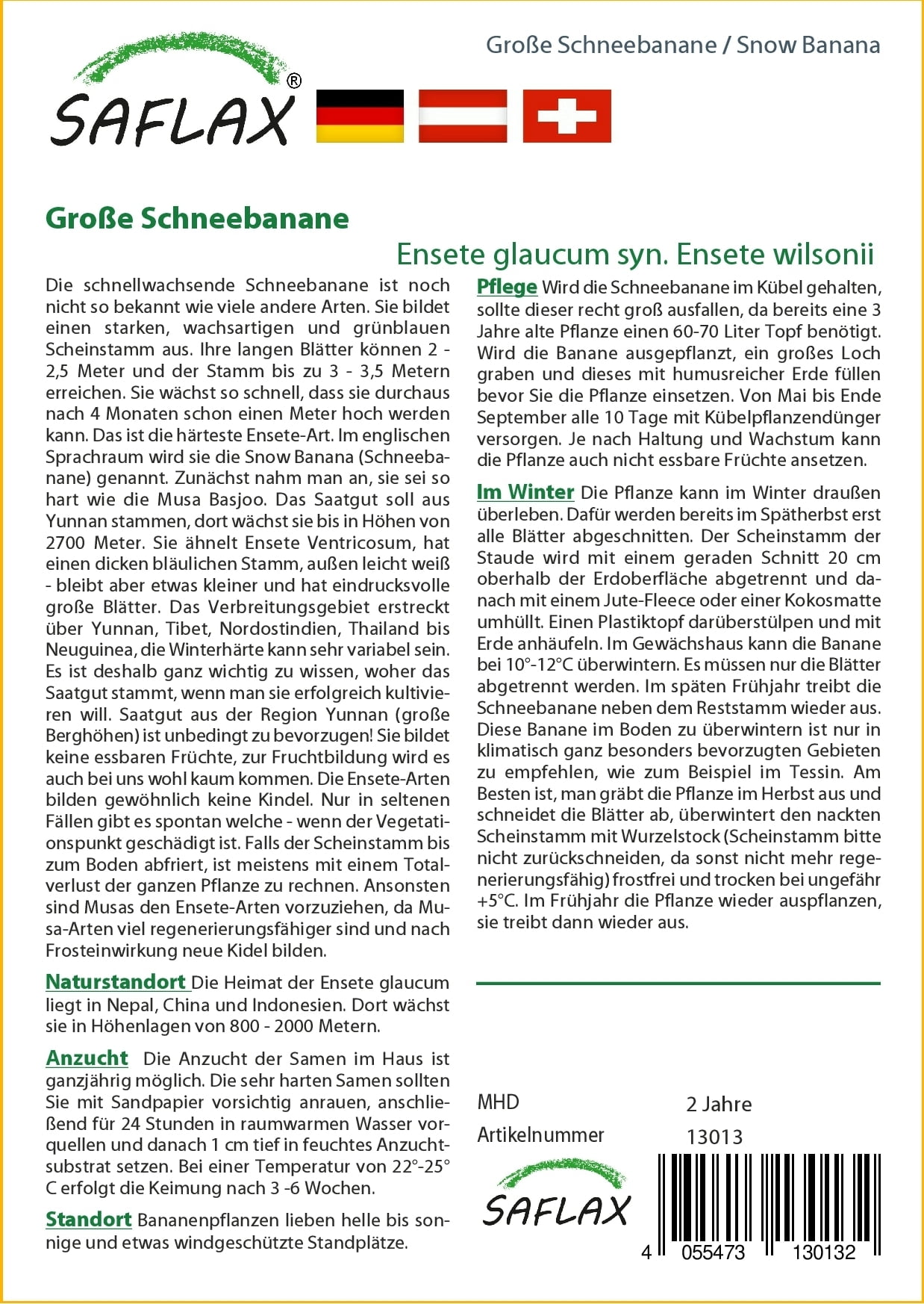 Duży banan śnieżny rośnie niezwykle szybko i może osiągnąć wysokość jednego metra już po czterech miesiącach. Jego rozłożyste liście nadają mu imponujący wygląd. Dzięki odpowiednim środkom ochronnym możliwe jest zimowanie banana śnieżnego na zewnątrz - ale jeśli chcesz być po bezpiecznej stronie, przenieś go do łagodniejszego środowiska.