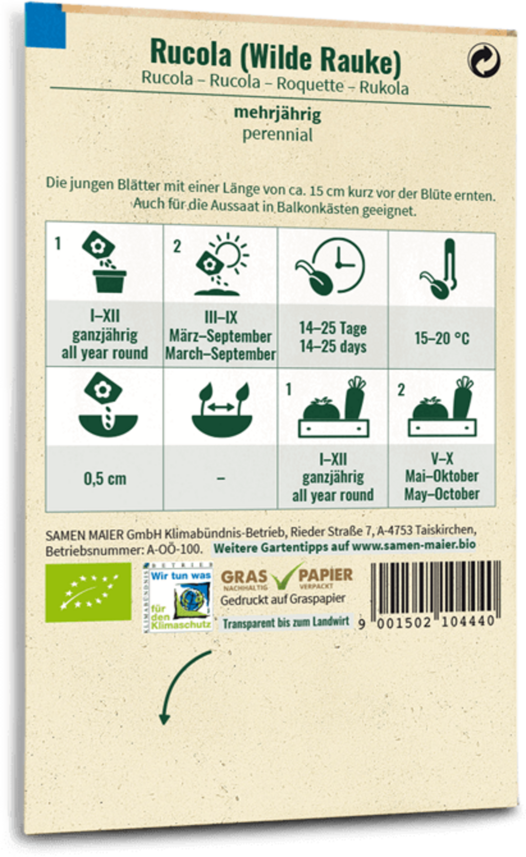 Samen Maier Bio rukola "Wilde Rauke", 0,50 g