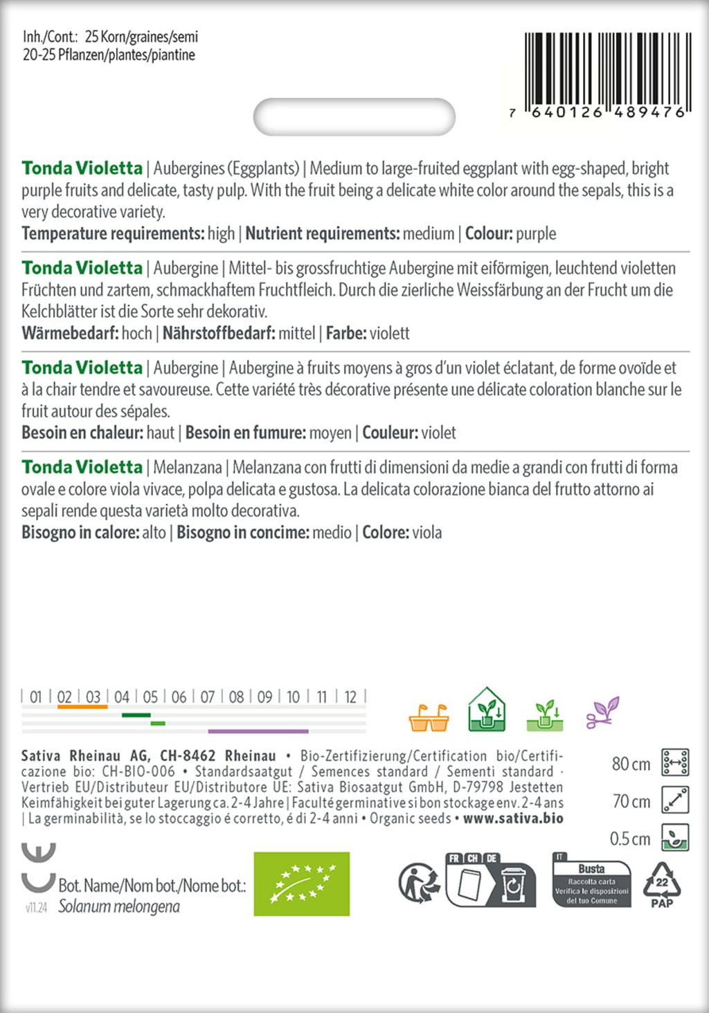 Sativa Bio Bakłażan "Tonda Violetta"