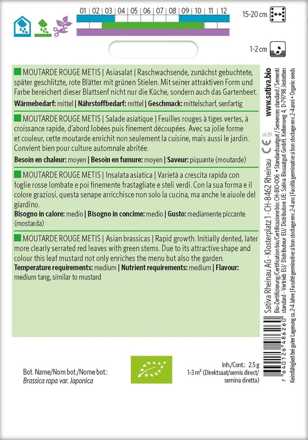 Sativa Bio Kapusta japońska, mizuna "Moutarde rouge Metis"