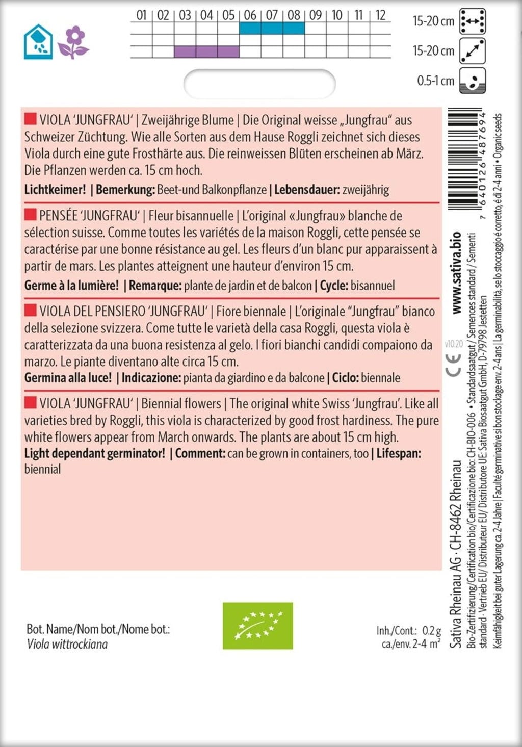 Sativa Bio Kwiat dwuletni Fiołek ogrodowy "Viola 'Jungfrau'"
