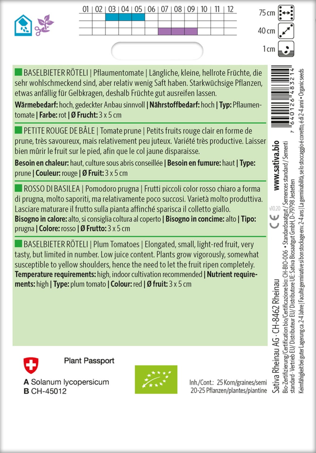 Sativa Bio Pomidor "Baselbieter Röteli"