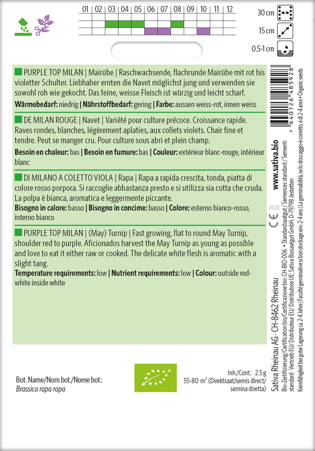 Ta płaska, okrągła rzepa o barwie od czerwonej do fioletowej rośnie szybko i powinna być zbierana jak najwcześniej. Jej delikatny, biały miąższ o lekko ostrym i aromatycznym smaku zachwyca zarówno na surowo, jak i po ugotowaniu.