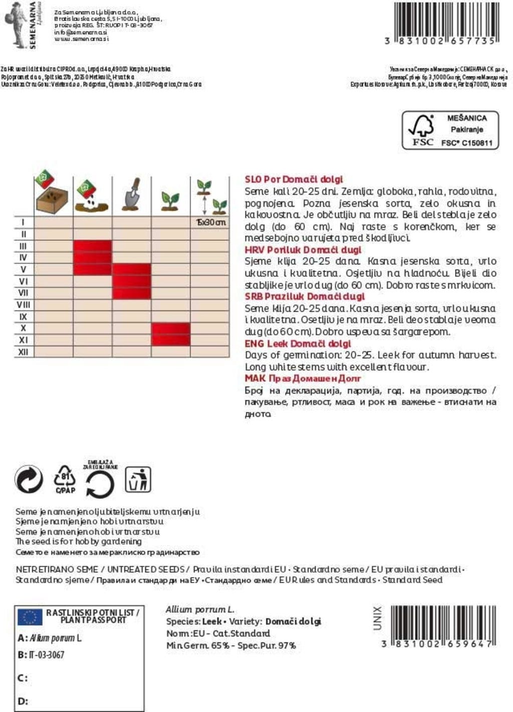 | Producent: | Semenarna Ljubljana d.o.o., Bratislavska Cesta 5, 1000, Ljubljana, Słowenia, info@semenarna.si, www.semenarna.si |