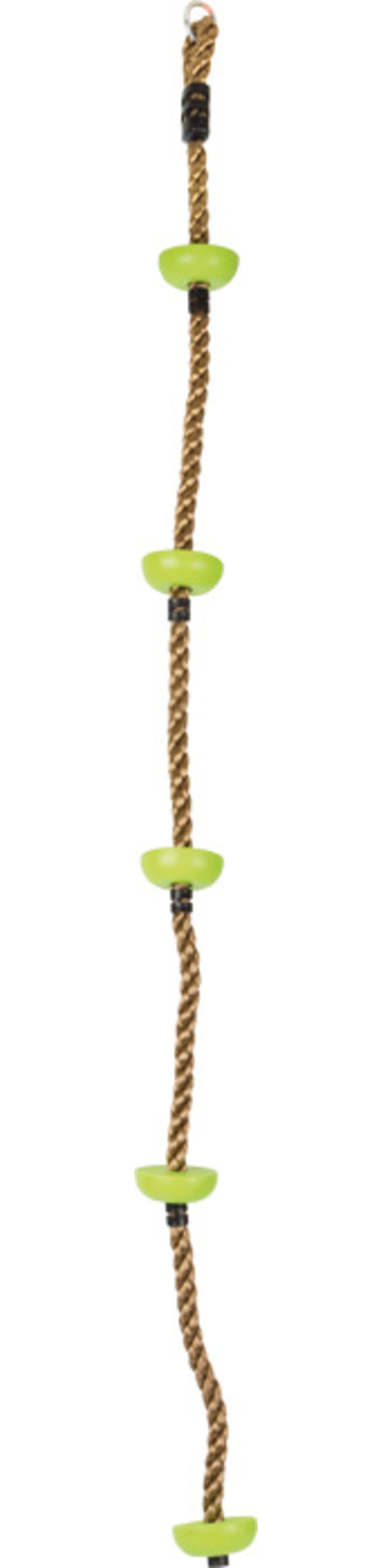 Kto może wspiąć się na najwyższy punkt? Ta wytrzymała lina gwarantuje godziny zabawy podczas wspinaczki. Linę można błyskawicznie przymocować do ram wspinaczkowych lub drzew. Pięć plastikowych uchwytów z poprzecznymi kreskami na stopniach ułatwia wspinaczkę.
