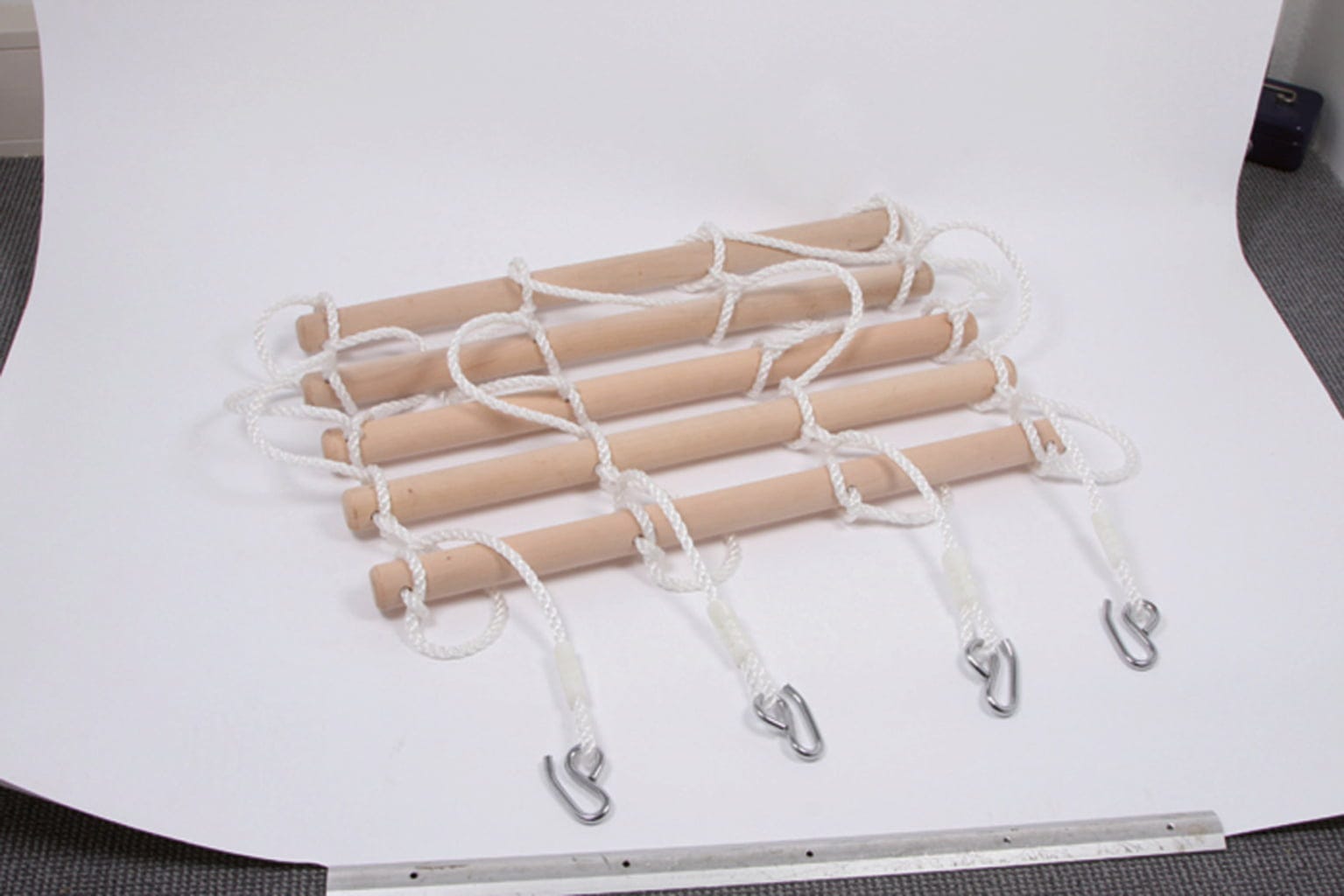 Wyżej i wyżej - kto zdoła wspiąć się na pięć drewnianych rozpórek? Dzięki tej wspaniałej drabince na placu zabaw zawsze jest mnóstwo różnorodności. Idealna do treningu siły i równowagi.