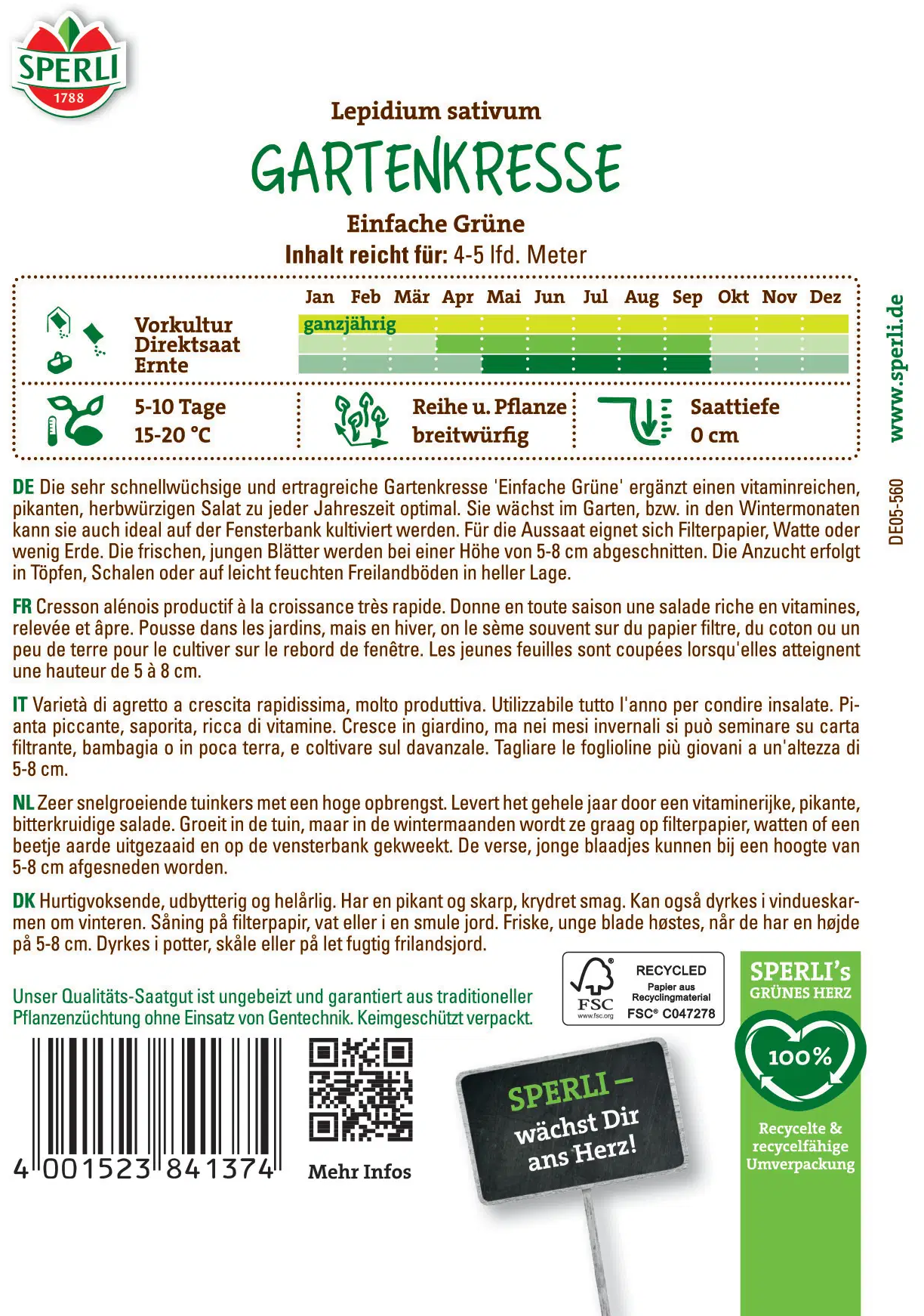 Dzięki tej rzeżusze ogrodowej można w mgnieniu oka wyhodować mnóstwo rzeżuchy na parapecie lub w ogrodzie ziołowym. Dzięki szybkiemu kiełkowaniu i energicznemu wzrostowi pierwsze liście można zebrać już po kilku dniach.