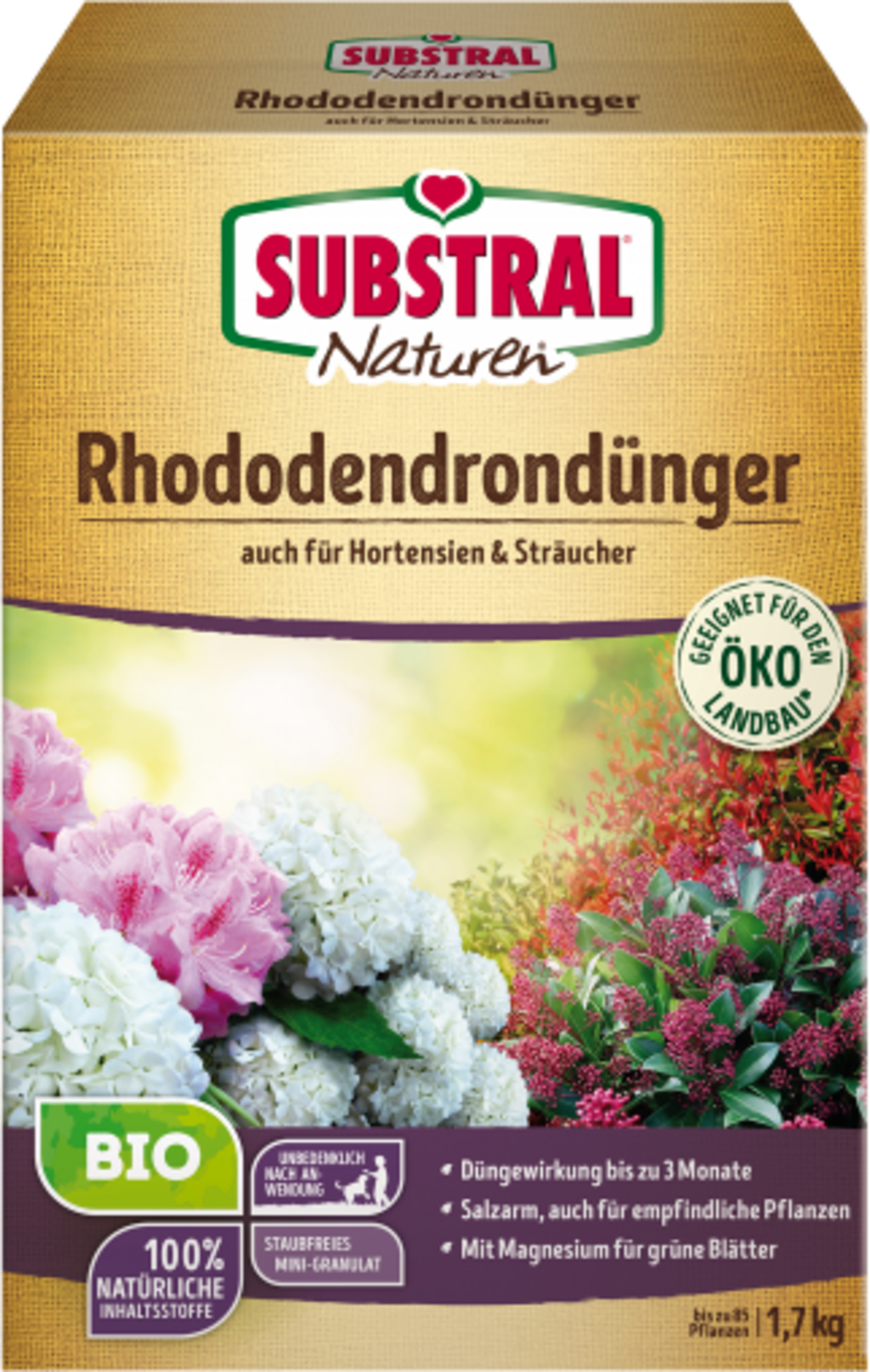 Ten kompletny nawóz organiczno-mineralny został opracowany specjalnie z myślą o rododendronach, hortensjach, iglakach i krzewach. Ponieważ nie zawiera żadnych dodatków chemicznych, umożliwia nawożenie w zgodzie z naturą.