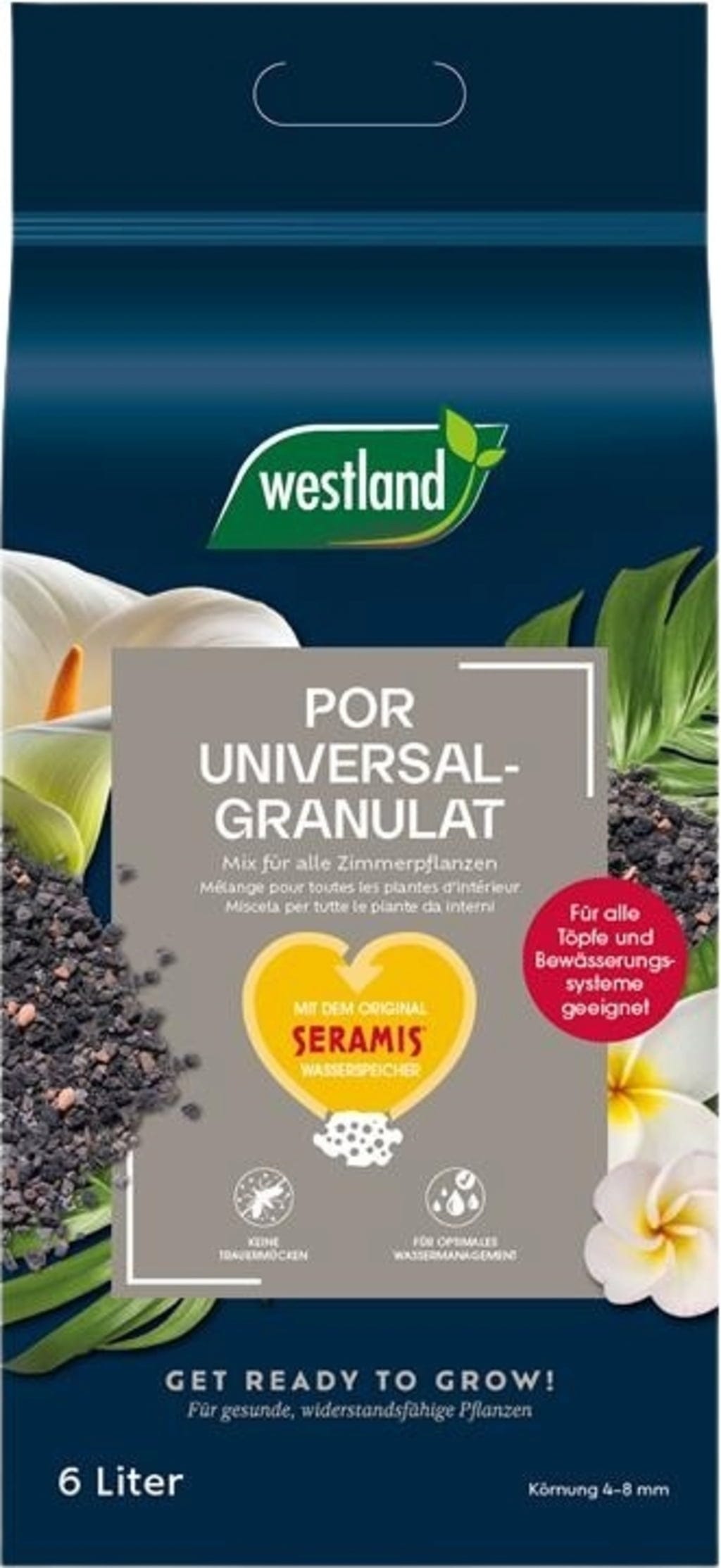 To wysokiej jakości, czysto mineralne podłoże składa się z mieszanki keramzytu, lawy i granulatu roślinnego Seramis® i jest odpowiednie dla wszystkich roślin domowych i doniczkowych.